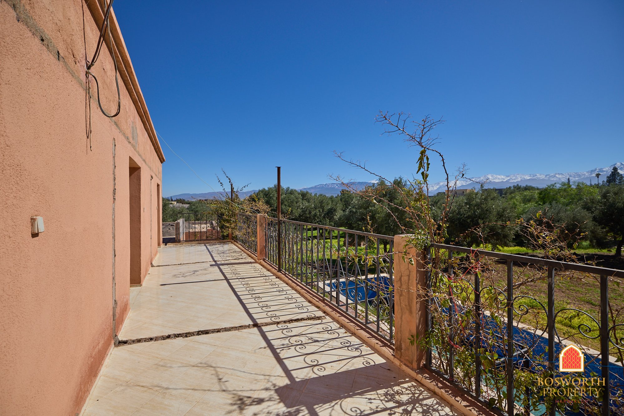 From the rooftop terrace, the views on the High Atlas mountains are absolutely stunning. This property offers an amazing opportunity to build a gorgeous farm house for vacation, holiday rentals, intimate retreats and more!