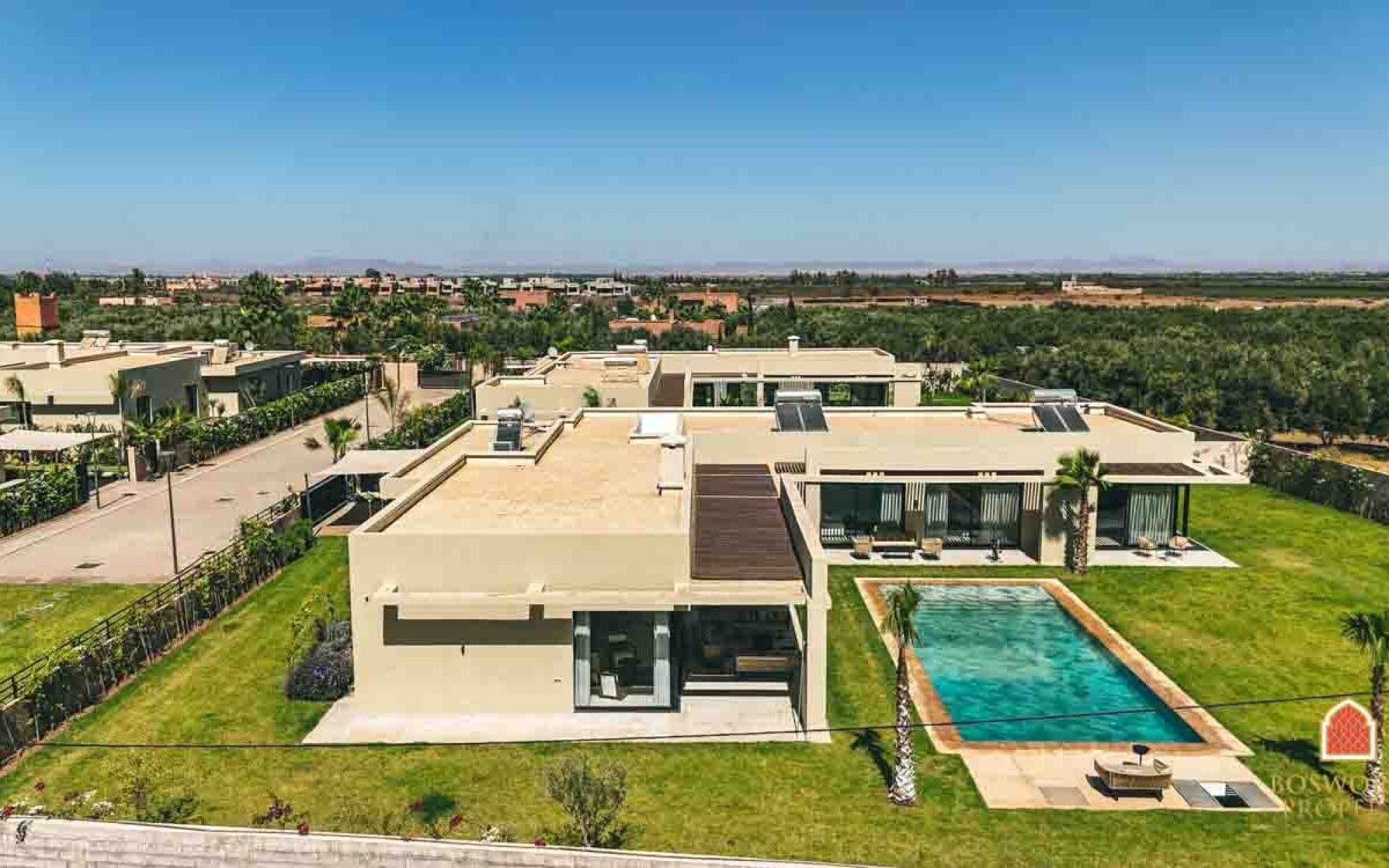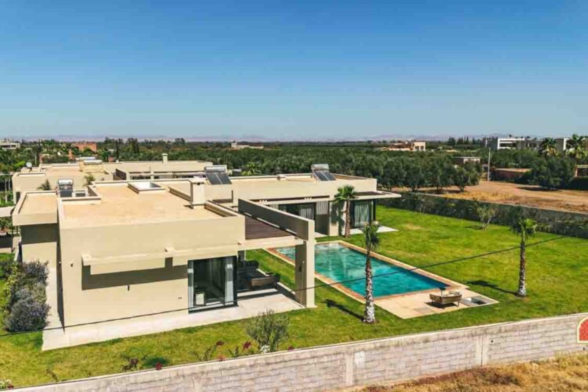 In a top location just an easy 10 minute drive south of Marrakech, this little development is top class. 24/7 security. And with all modern conveniences, including fiber optic internet. There are solar panels for hot water. We have three villas available – from 2075m2 to 2155m2 freehold plots. All have over 460m2 built area.