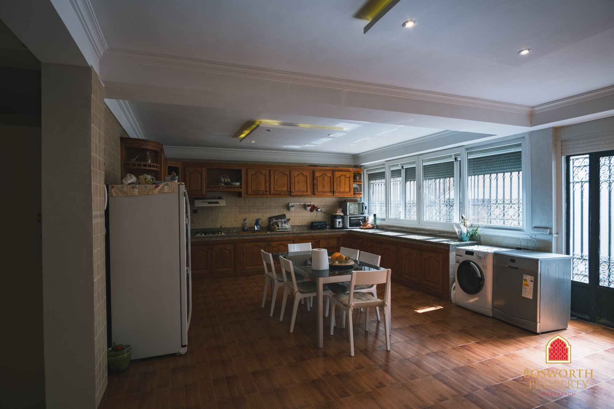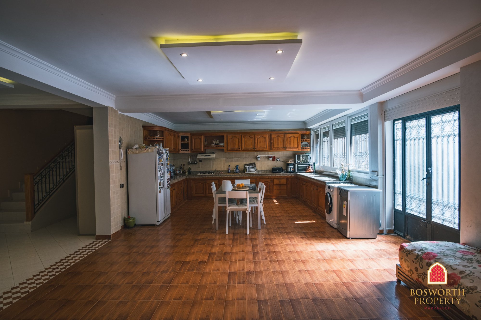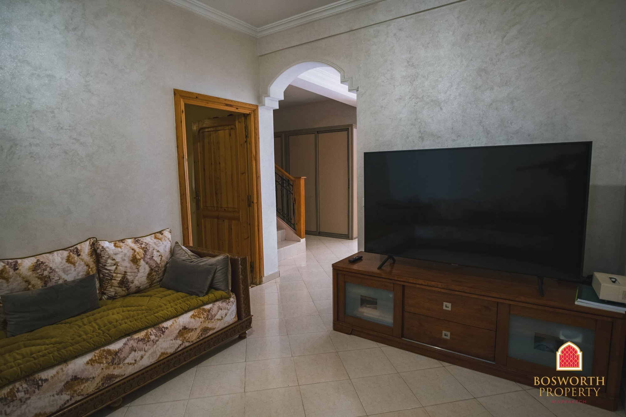 This charming and spacious family villa is located in the sought-after Targa Masmoudi neighbourhood - just 10 minutes from the vibrant centre of Gueliz and under 20 minutes from the historic heart of Marrakech, Jemaa El-Fnaa. With a built area of 387m2 across three levels, this home offers style, space, and real versatility.