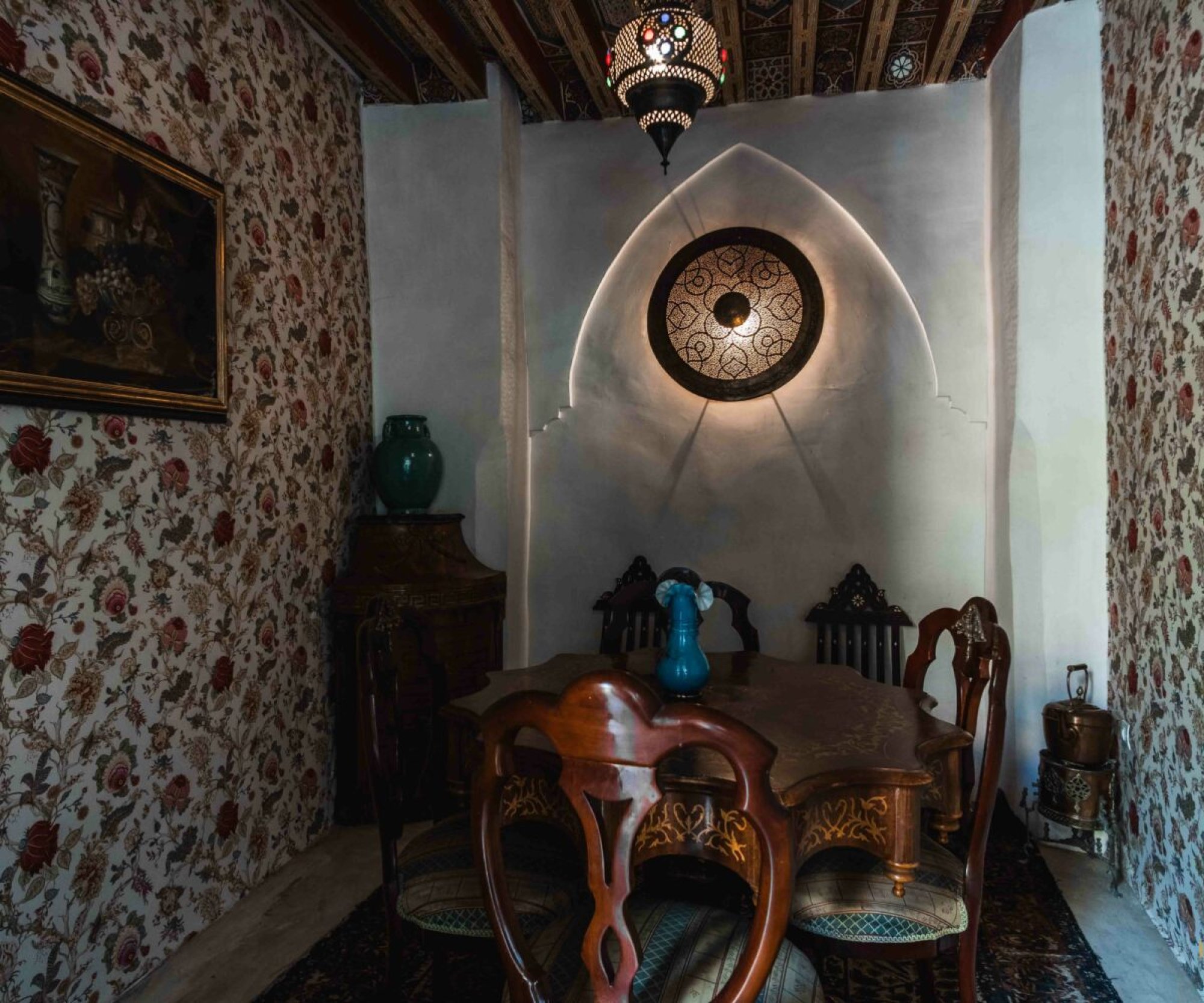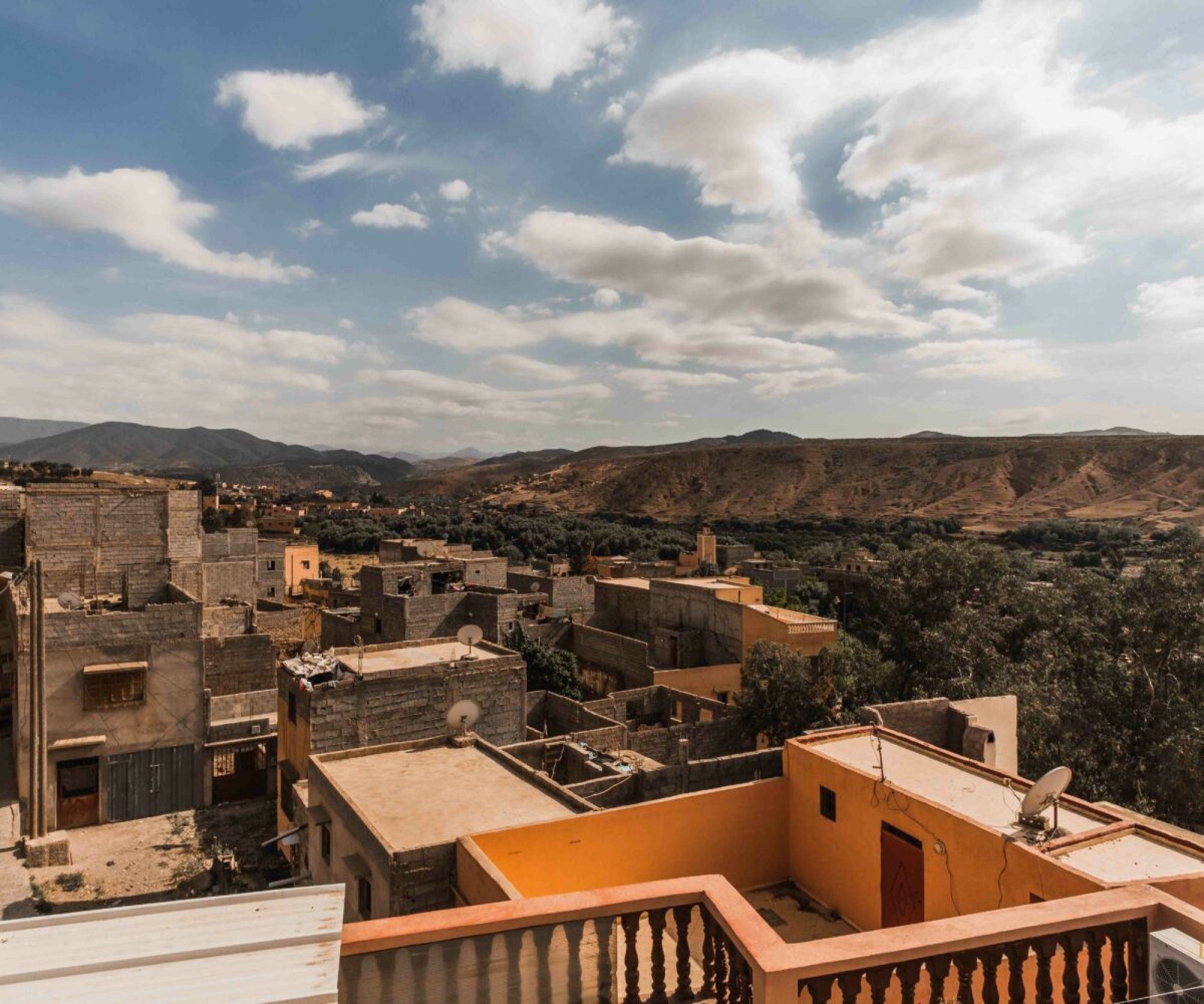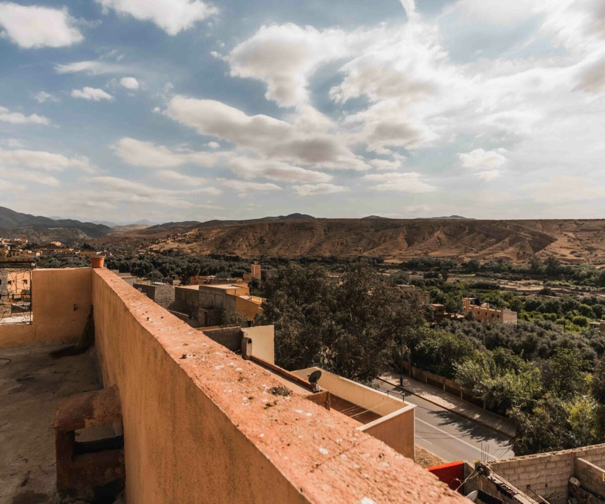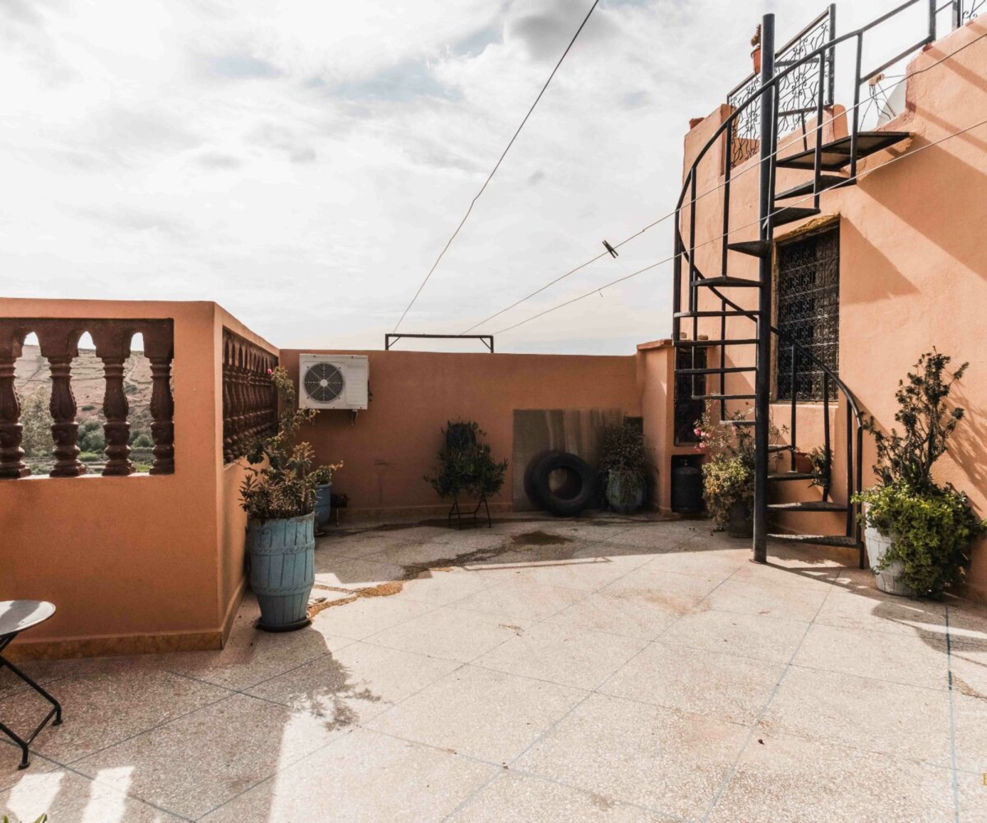 From the terrace a spiral metal staircase leads up to the main roof terrace, which has amazing views into the Atlas and across the river valley.