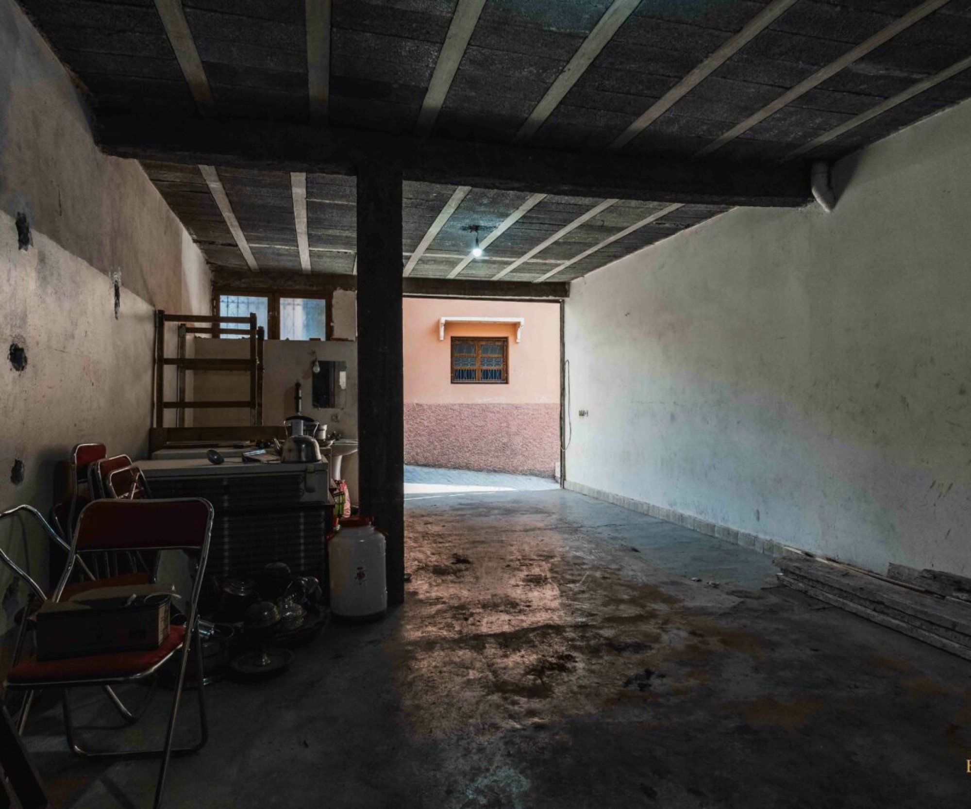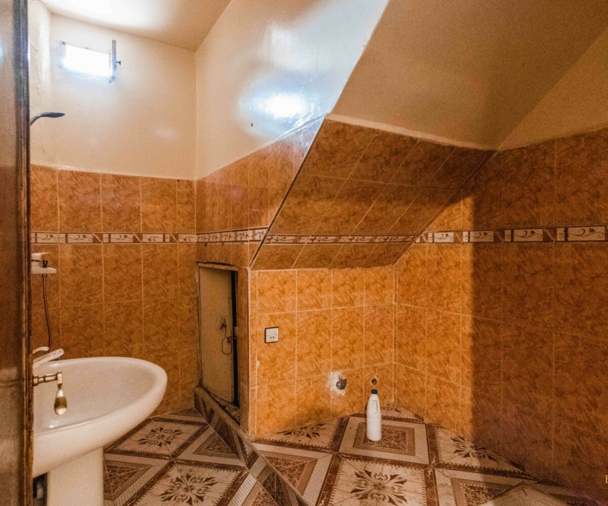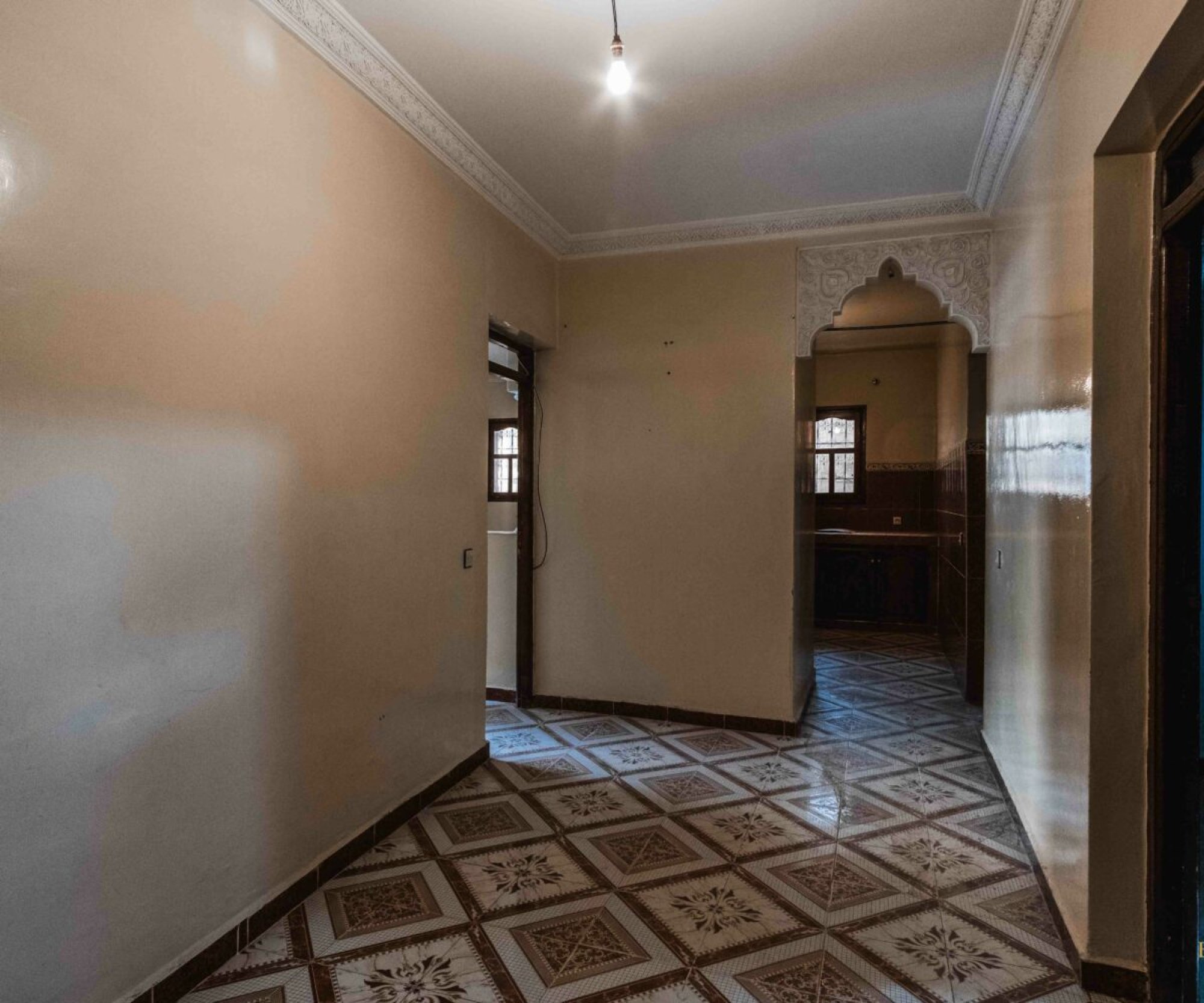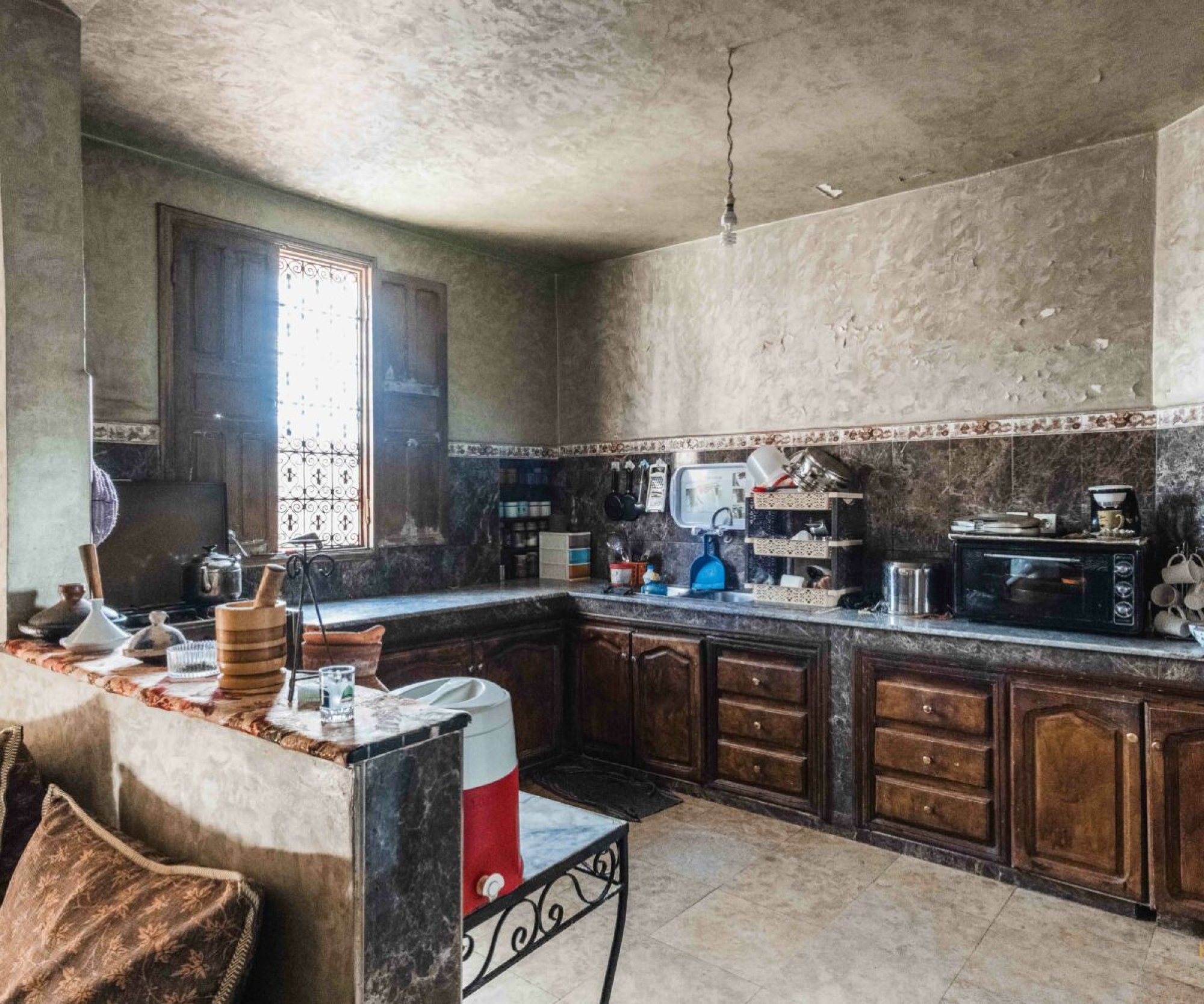 The house is built into the hillside in traditional Berber style. There’s a lower ground floor which has a big tandem garage. The ground floor has a self contained apartment with it’s own entrance door. There’s a large central hallway with a salon, shower room with WC, two bedrooms and a kitchen. Accessed from the outside is a lockup shop or storage unit.
