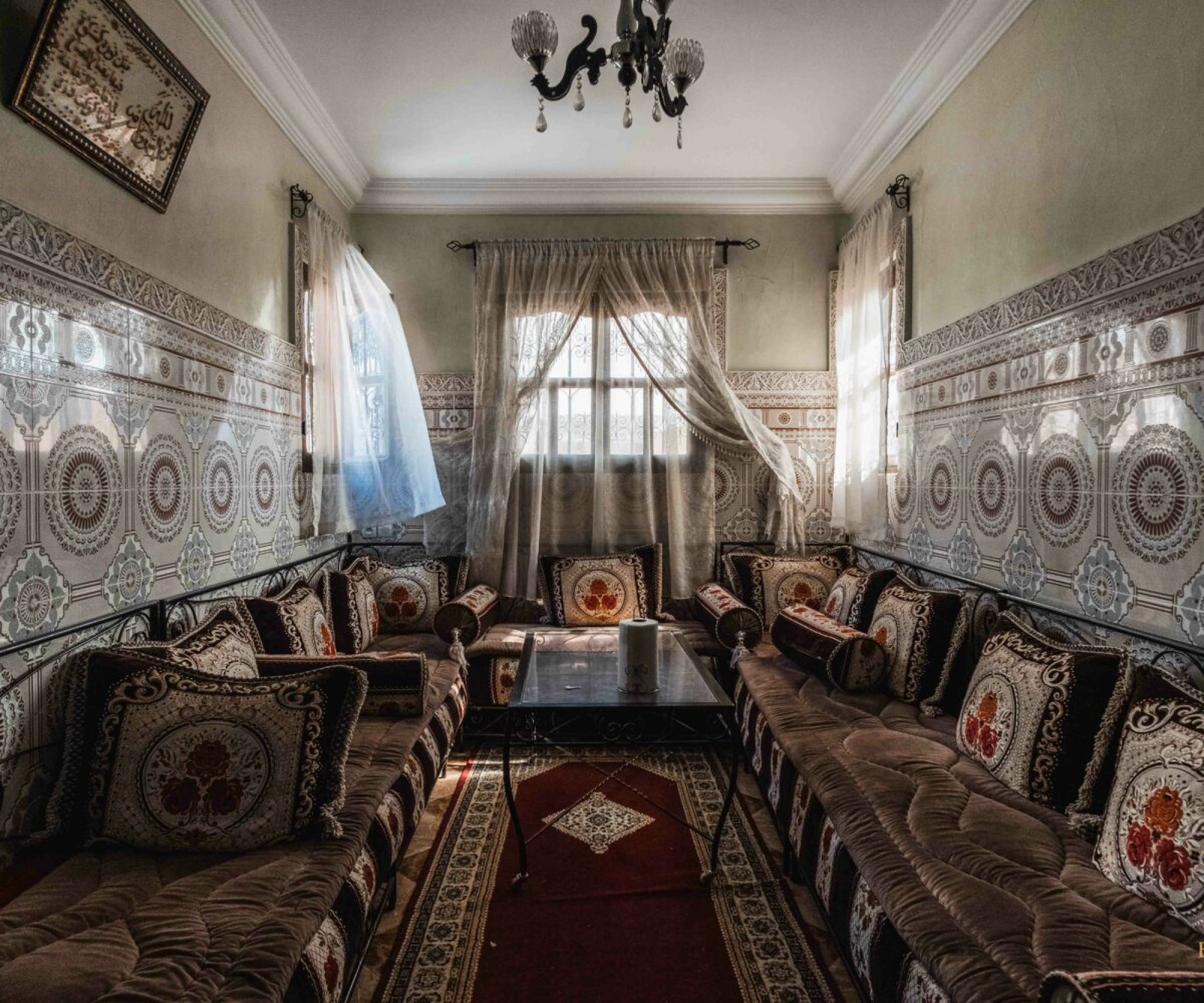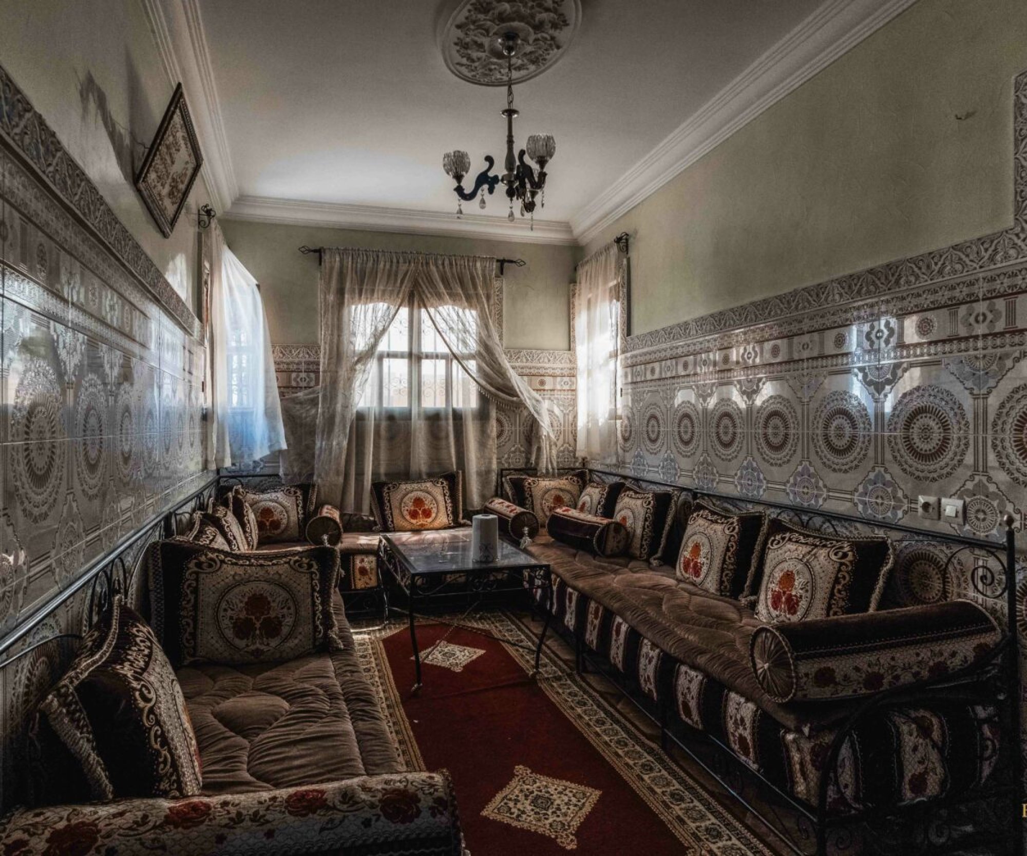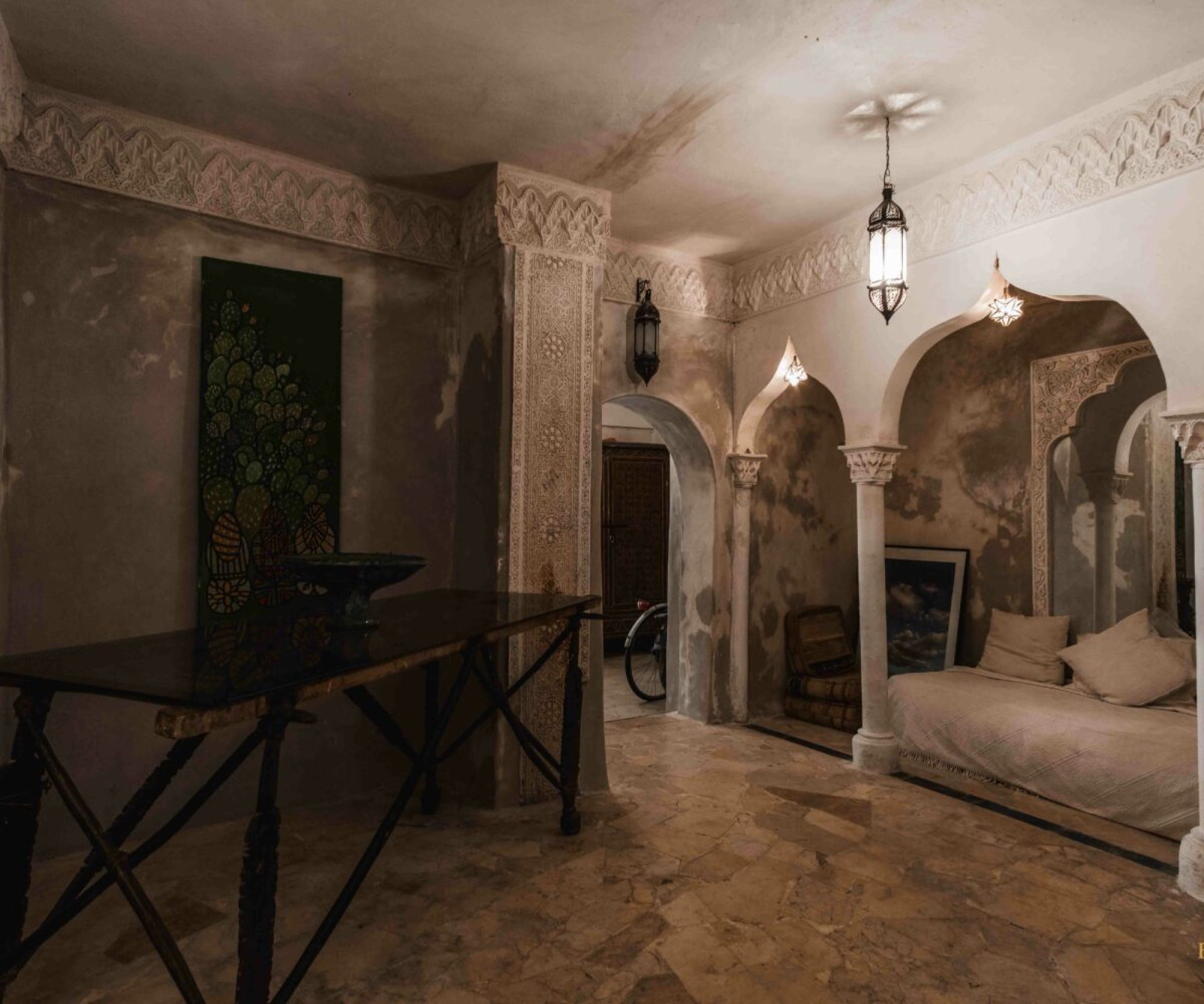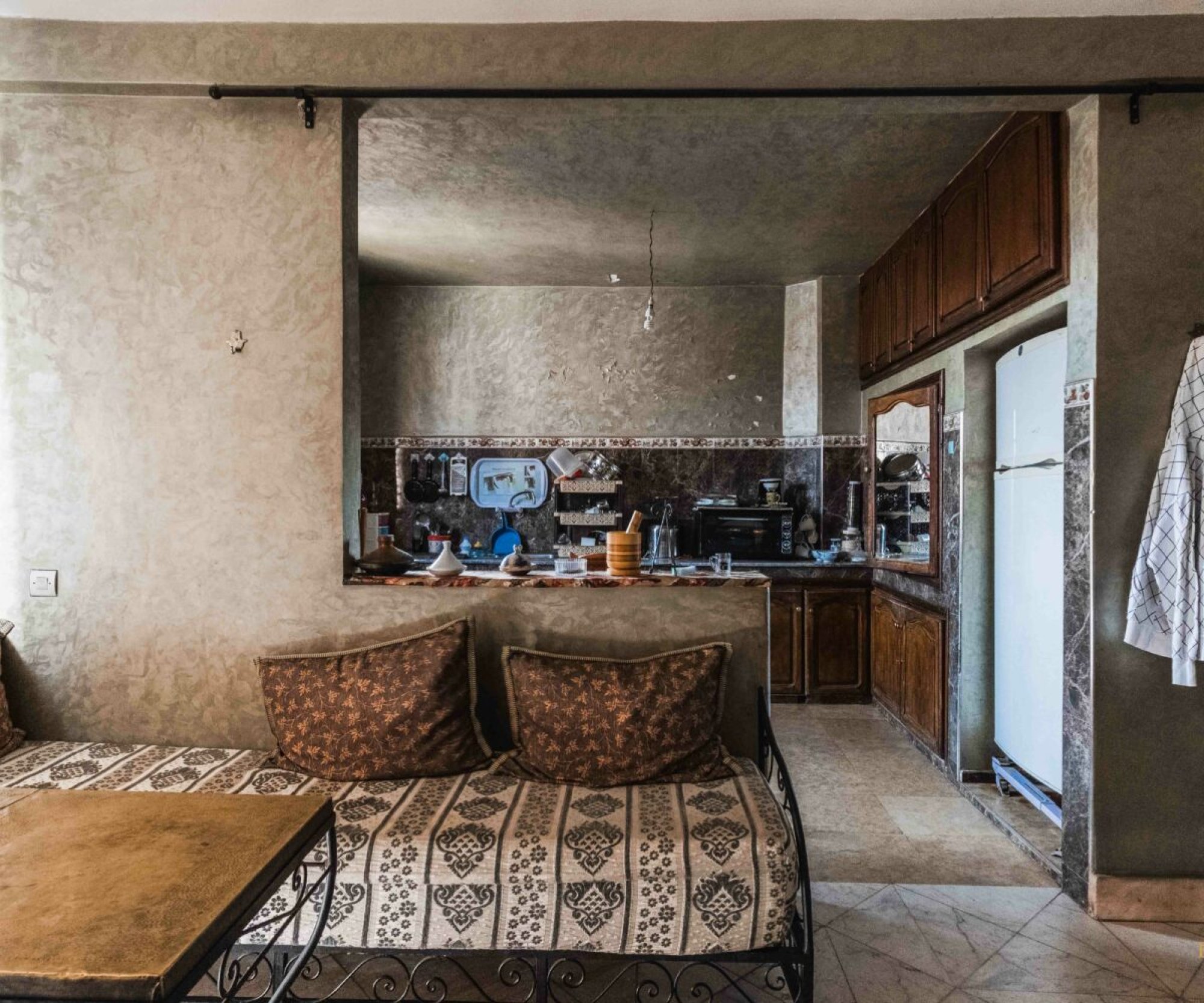 The house is built into the hillside in traditional Berber style. There’s a lower ground floor which has a big tandem garage. The ground floor has a self contained apartment with it’s own entrance door. There’s a large central hallway with a salon, shower room with WC, two bedrooms and a kitchen. Accessed from the outside is a lockup shop or storage unit.