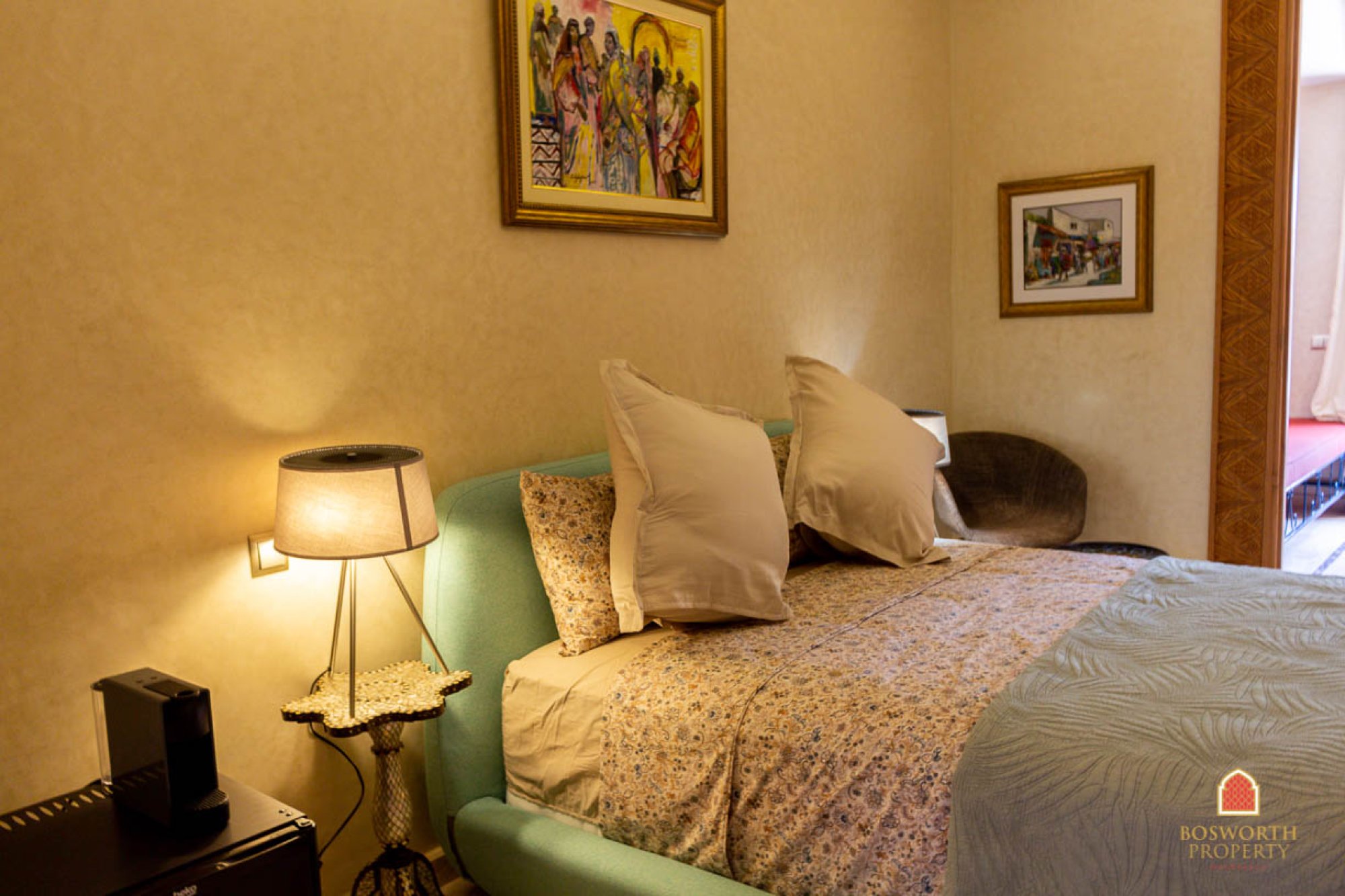 8 wonderful suites. All modern conveniences. This is Marrakech luxury at it’s best. Exquisite marble. Cedar wood. Hand painted ceilings … welcome to a world of rafinement and exoticism.
