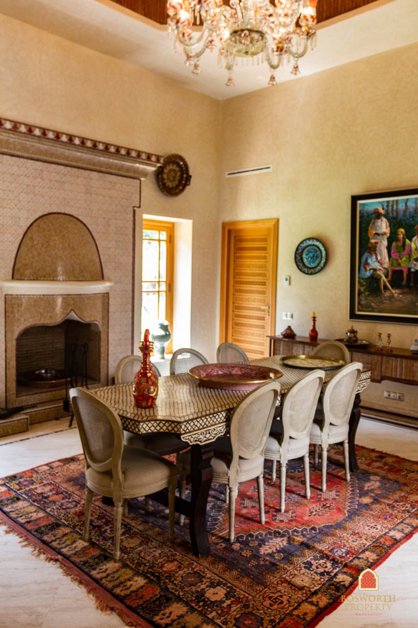 In the most perfect Palm Grove location, this Luxury Villa For Sale Marrakech will seduce you with the quality of work, the amazing art collection and the fabulous gardens. It is your perfect Marrakech home – for your holidays, your receptions and your parties. As well as the main house there is a superb reception salon with it’s own kitchen. It’s a beautiful environment.