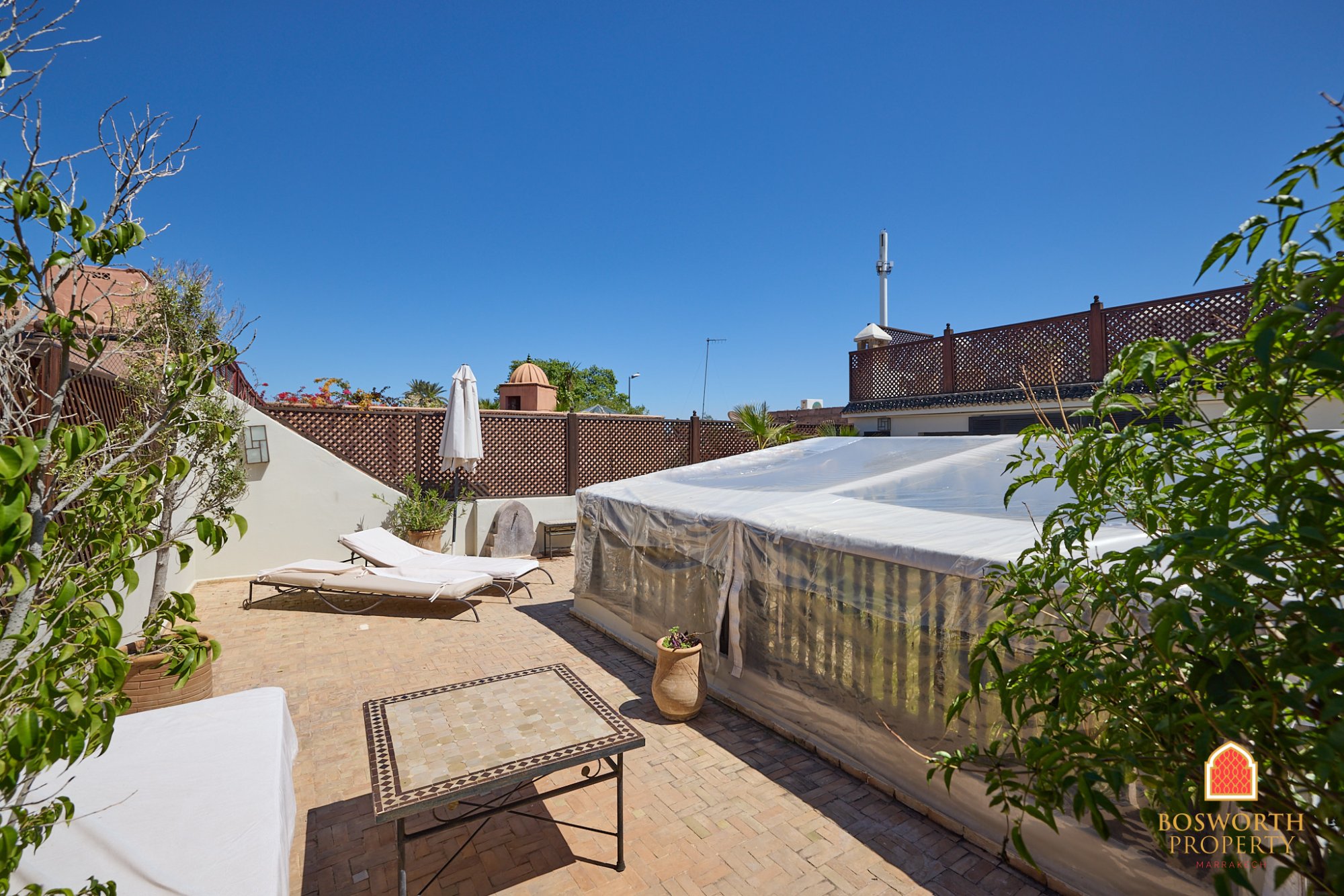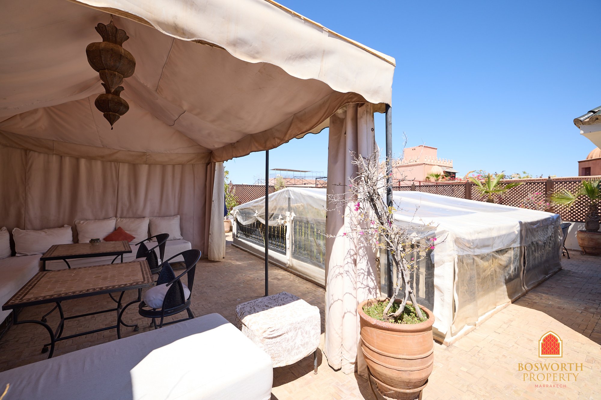 Nestled between Riad Zitoune Jdid and Riad Zitoune Lkdim, this traditional Riad guesthouse will seduce you with its classical architecture and it's feel of old Marrakech. There are five beautiful en suite bedrooms. A generous sitting room and a superb patio courtyard, not to mention the beautiful pool. You get a hammam and a massage room. The sunny terraces are spacious. And there is a high terrace with the most spectacular views! A fantastic bargain at just 760'000 euros. WhatsApp me now on +212 6 5802 5028 or use the contact form on this page to arrange your private showing. You will fall in love!
