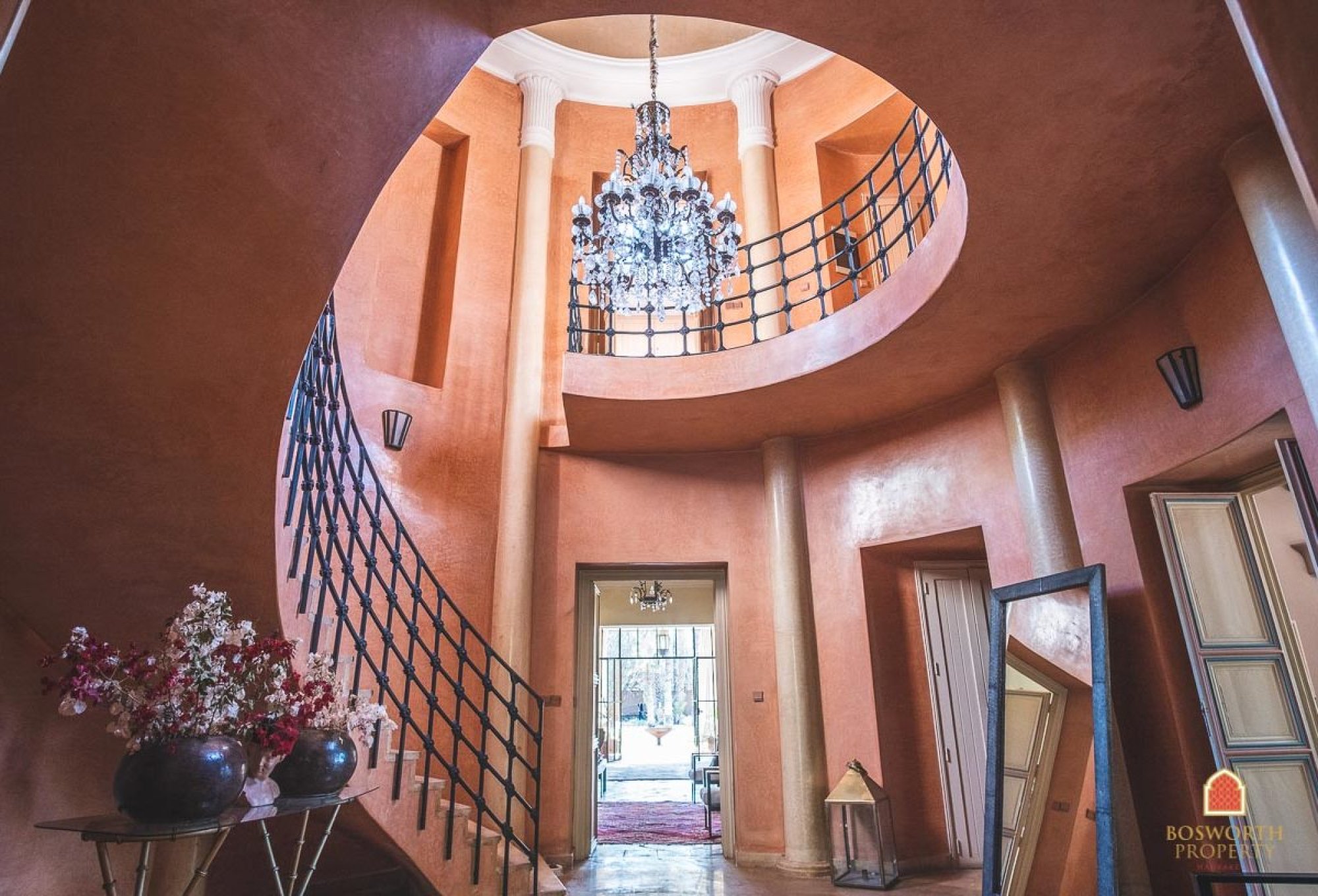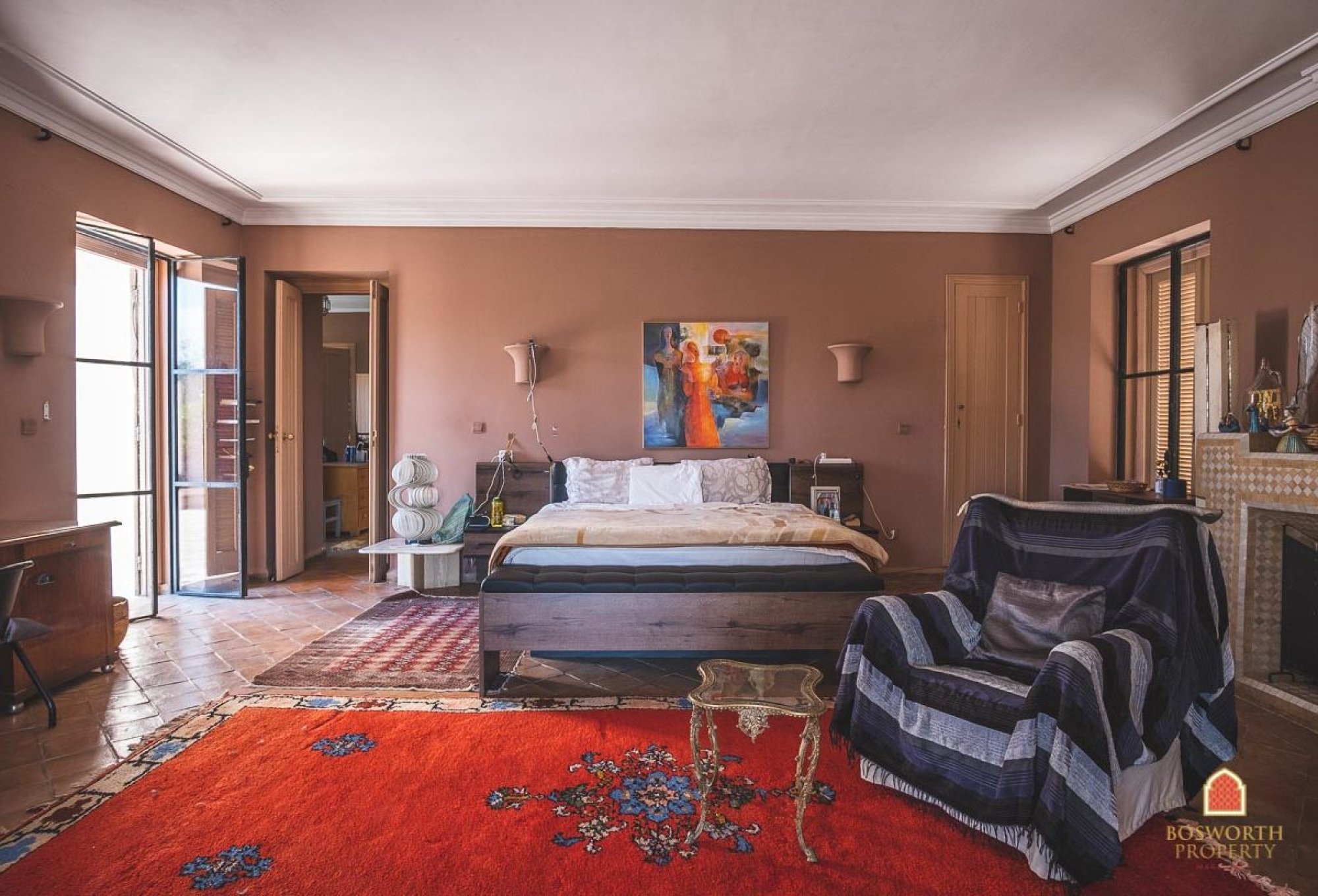 Iconic Bill Willis Luxury Villa For Sale Marrakech Palmeraie. Set in one hectare of mature gardens in the perfect location. Unique and desirable residence. Four suites, including a stunning master with it’s vast private terrace. There is a big swimming pool. The reception lounge, giving onto the gardens, is a design classic. This Villa was conceived, designed and built by the legendary Bill Willis – one of his finest projects. It uses lots of natural stone, unique tiling and swathes of sensual tadelakt. There are many monumental fireplaces and other signature elements throughout the property, including a central cupola. If you are looking for a statement Villa within easy reach of Marrakech city centre then this is the one for you. It is seeped in Marrakech history and offers comfort, calm and accessibility. Call me for further information on +212658025028 or mail [email protected] – I look forward to hearing from you!