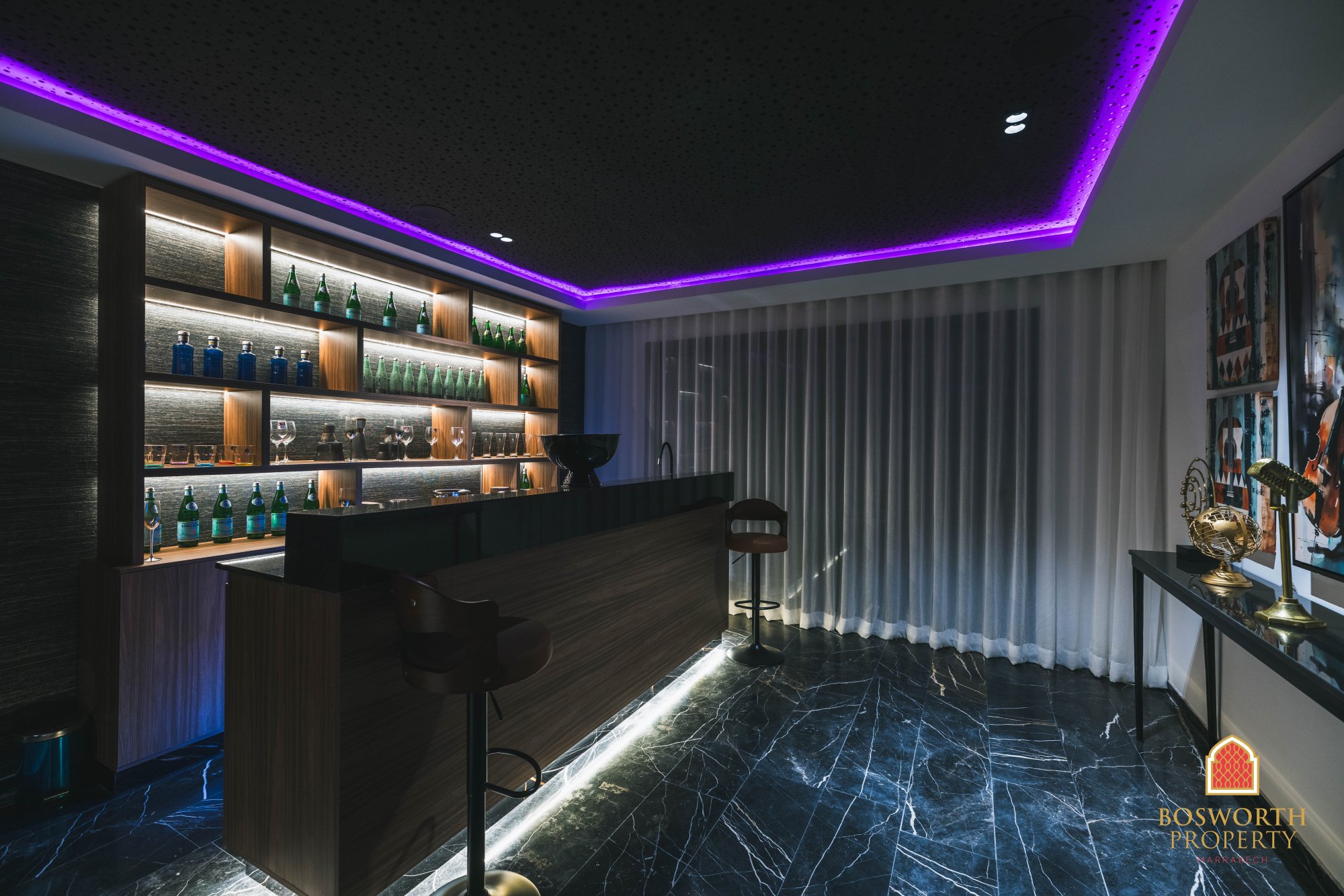 The cinema room is fully air-conditioned, sound-insulated, and equipped with custom lighting and exceptionally plush seating, offering a world-class viewing experience. This level also includes a guest toilet, laundry room, service area for a housekeeper, and an en-suite bedroom suitable for staff accommodation or an additional guest suite.