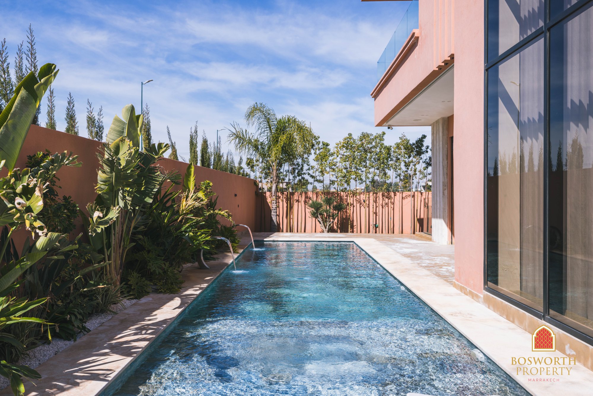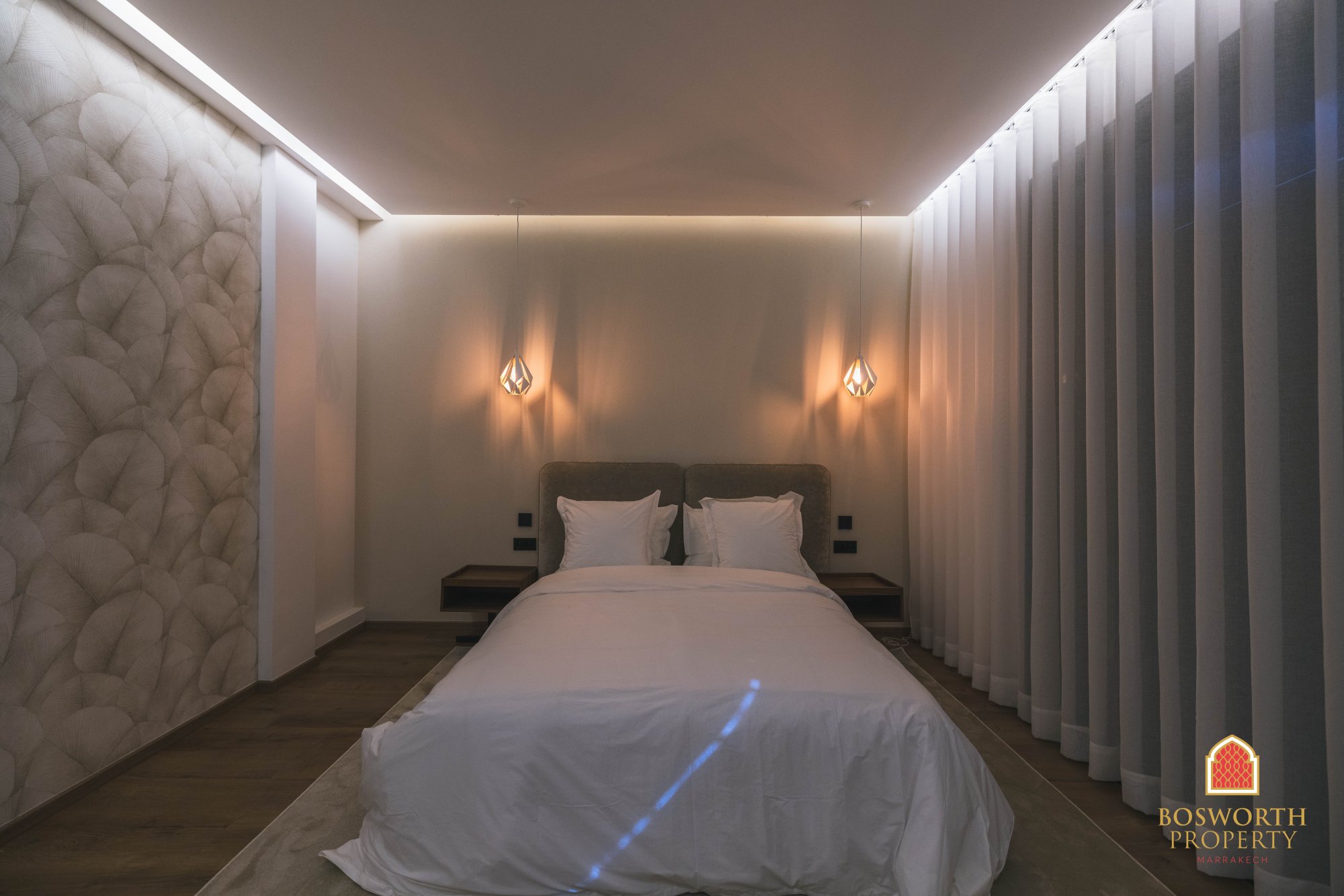 Located in the highly sought-after Agdal district, just moments from the vibrant Boulevard Mohamed VI, this ultra-modern smart villa epitomises contemporary urban living in Marrakech, with top-quality finishes and state-of-the-art technology throughout.
