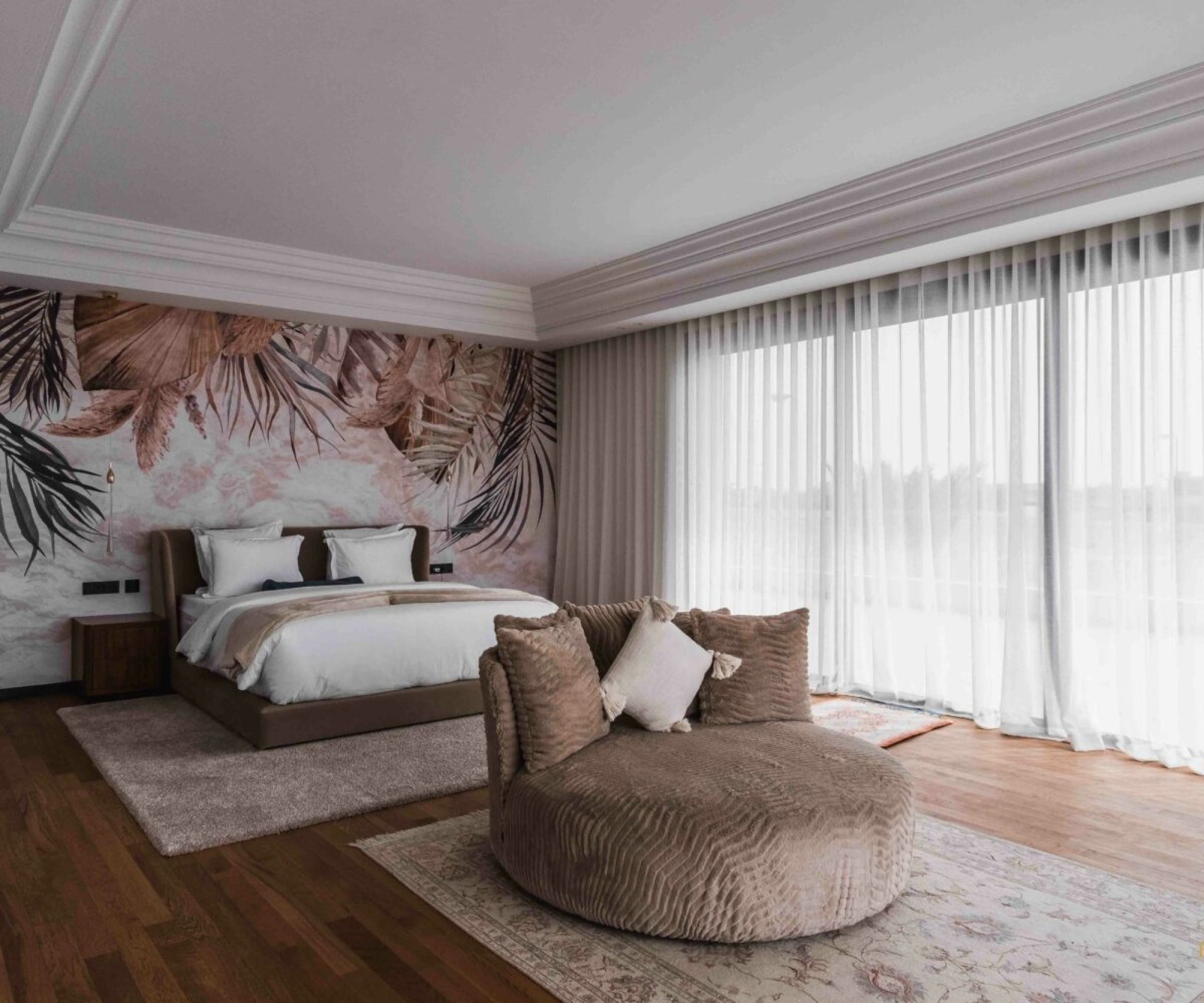 There are four beautiful suites, all with excellent wardrobes and bathrooms. They all give onto either to wrap around balconies or the garden.