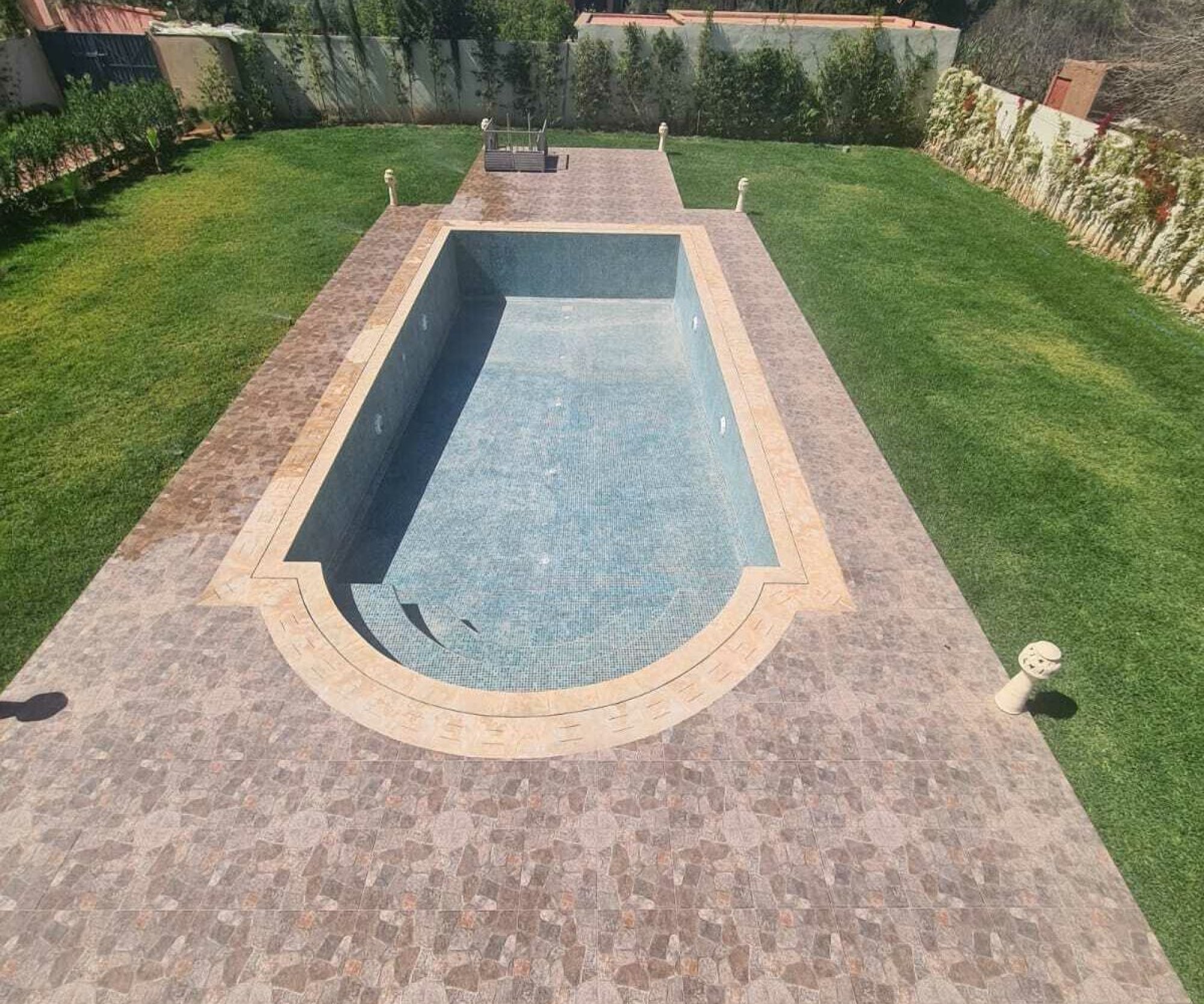 New 8 Bedroom 8 Bathroom Villa with Pool For Sale Marrakech. This is a huge, just finished new build villa off the Route de Fes 15km from the centre of Marrakech. The house is quietly situated on a minor road and off a short gravel track. The property would be ideal for rental use, either as an auberge or as a whole house let. Please note that although the house is held on a freehold title, it is in an agricultural zone which currently restricts potential owners to those with Moroccan, Tunisian or Senegalese nationality. Please call us on 00212655446749 or email contact@bosworthpropertymarrakech for more details
