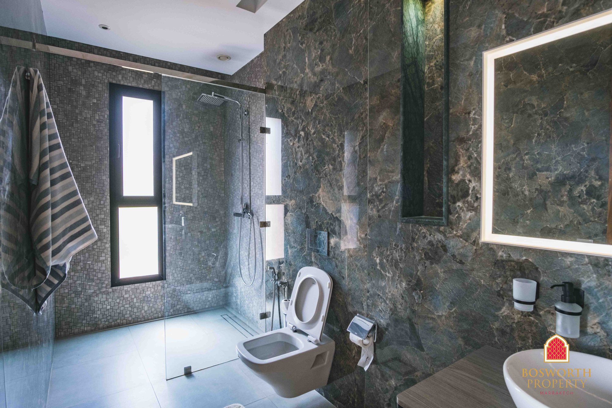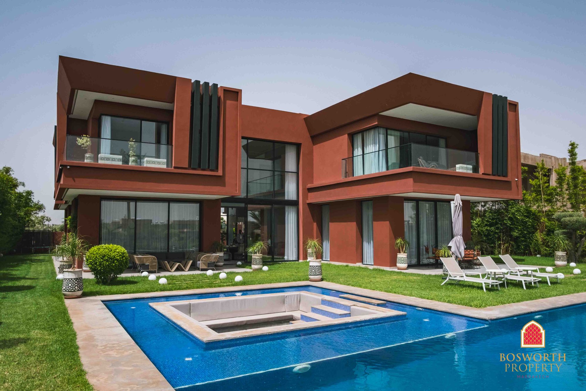 If you're looking for a statement villa, either as your home or as a top-end luxury rental investment, this is the one for you. Right on the golf course in the exceptional Amelkis 3 development, with 24/7 security and just a short drive to Marrakech Medina, this property is stunning. Fabulous architecture, top quality fittings and finishings throughout. It has a great vibe and is a stand out opportunity. WhatsApp me now on +212 6 5802 5028 or fill in the contact form on this page for the price. Yes!