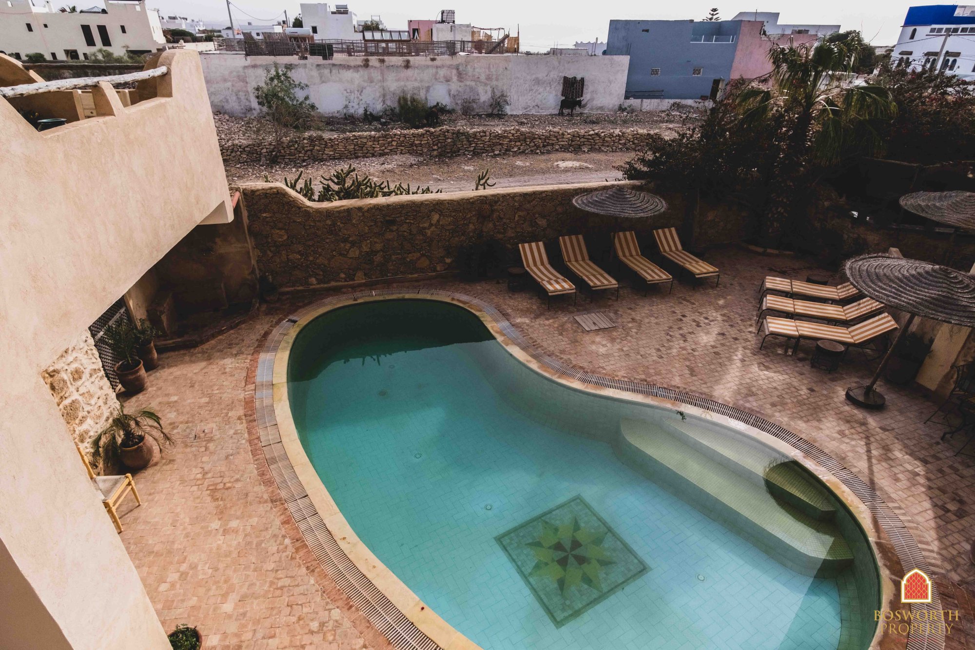Sea View Hotel For Sale Essaouira Sidi Kaouki. An amazing hotel residence, right by the beach in Sidi Kaouki, a fabulous beach town just south of Essaouira. 7 excellent appartements, giving 9 rooms. 700m2 freehold title footprint. A successful going concern. The location is absolutely fabulous. All is in great condition and is being sold as a going concern at just 850’000 euros. Get it while you can!