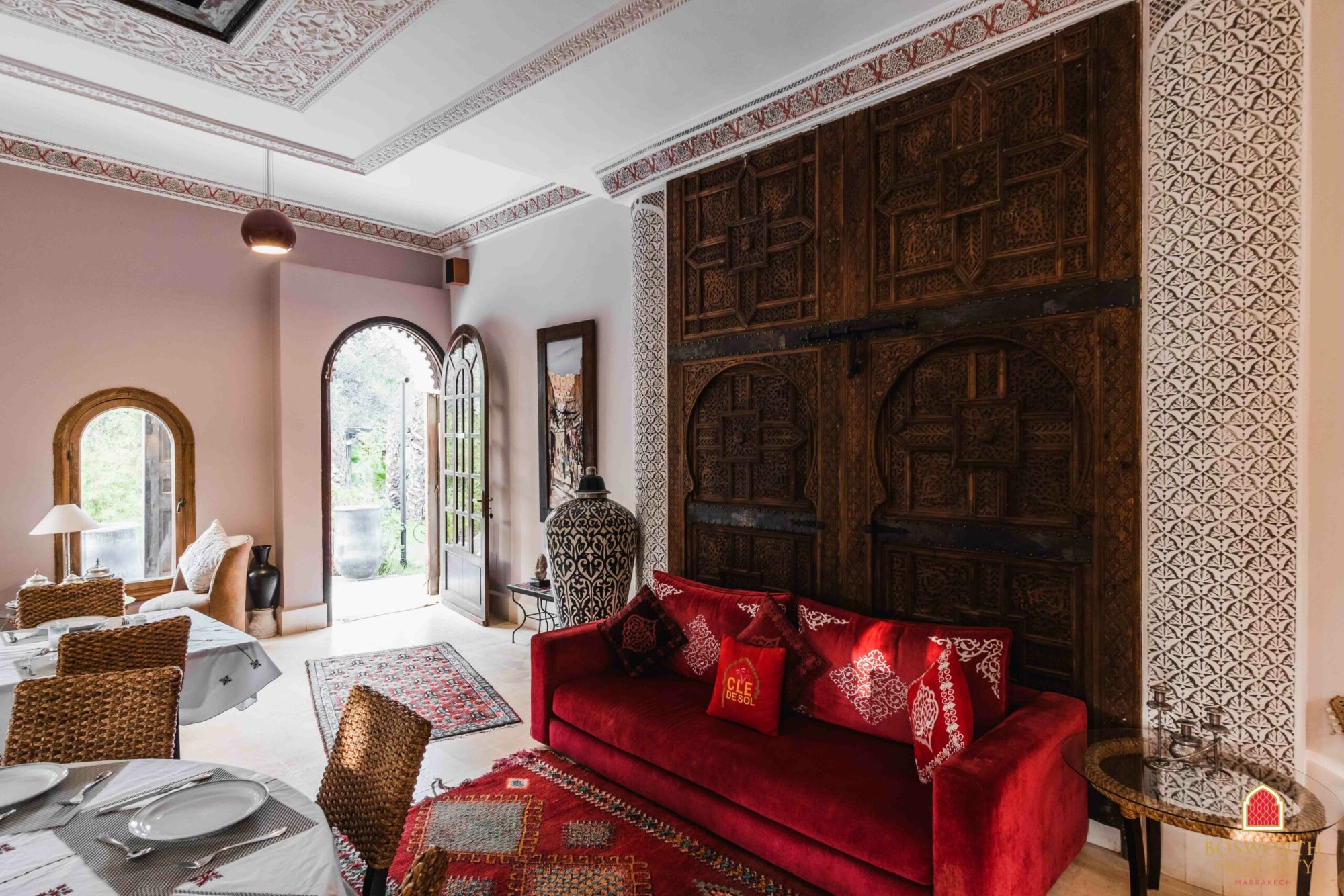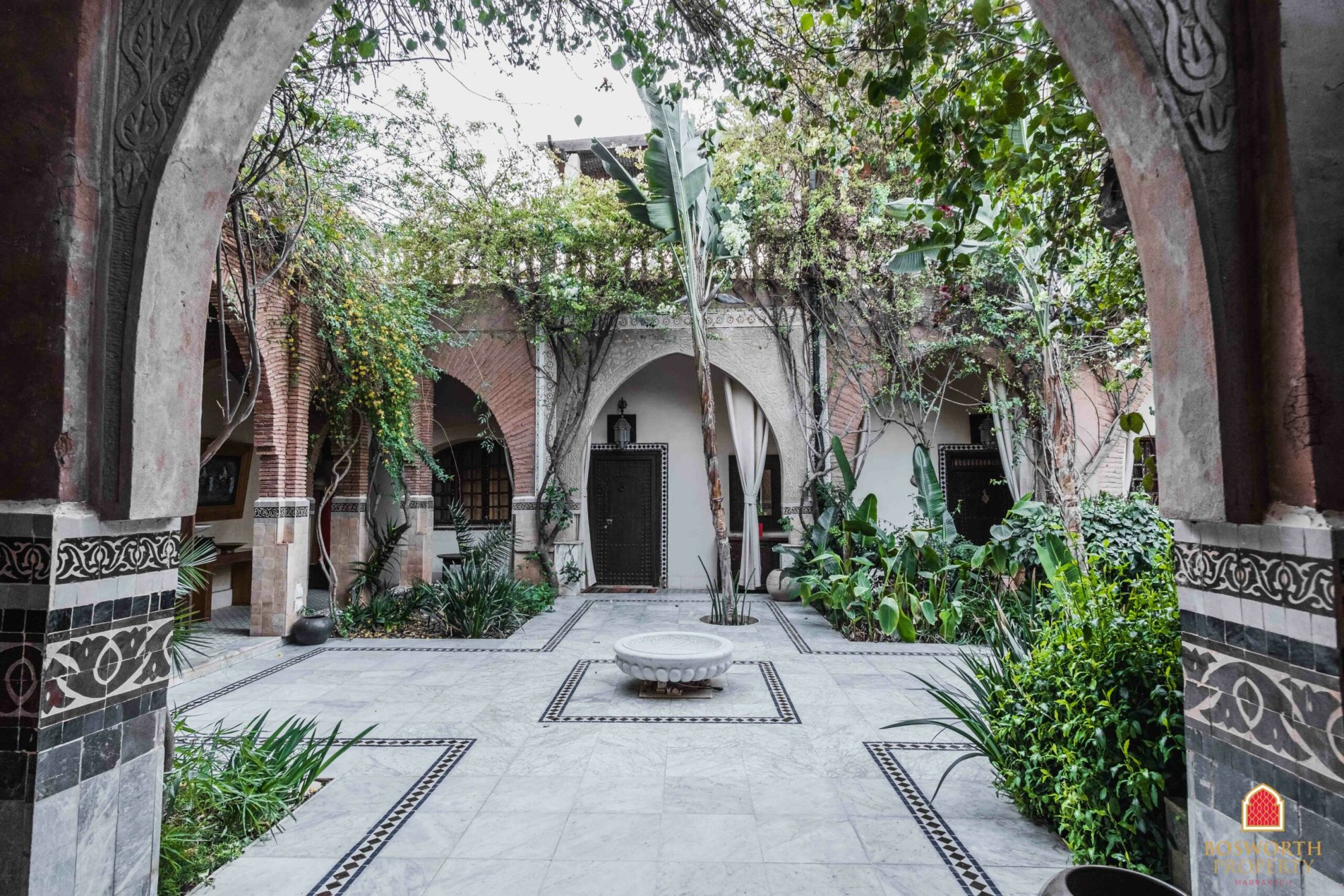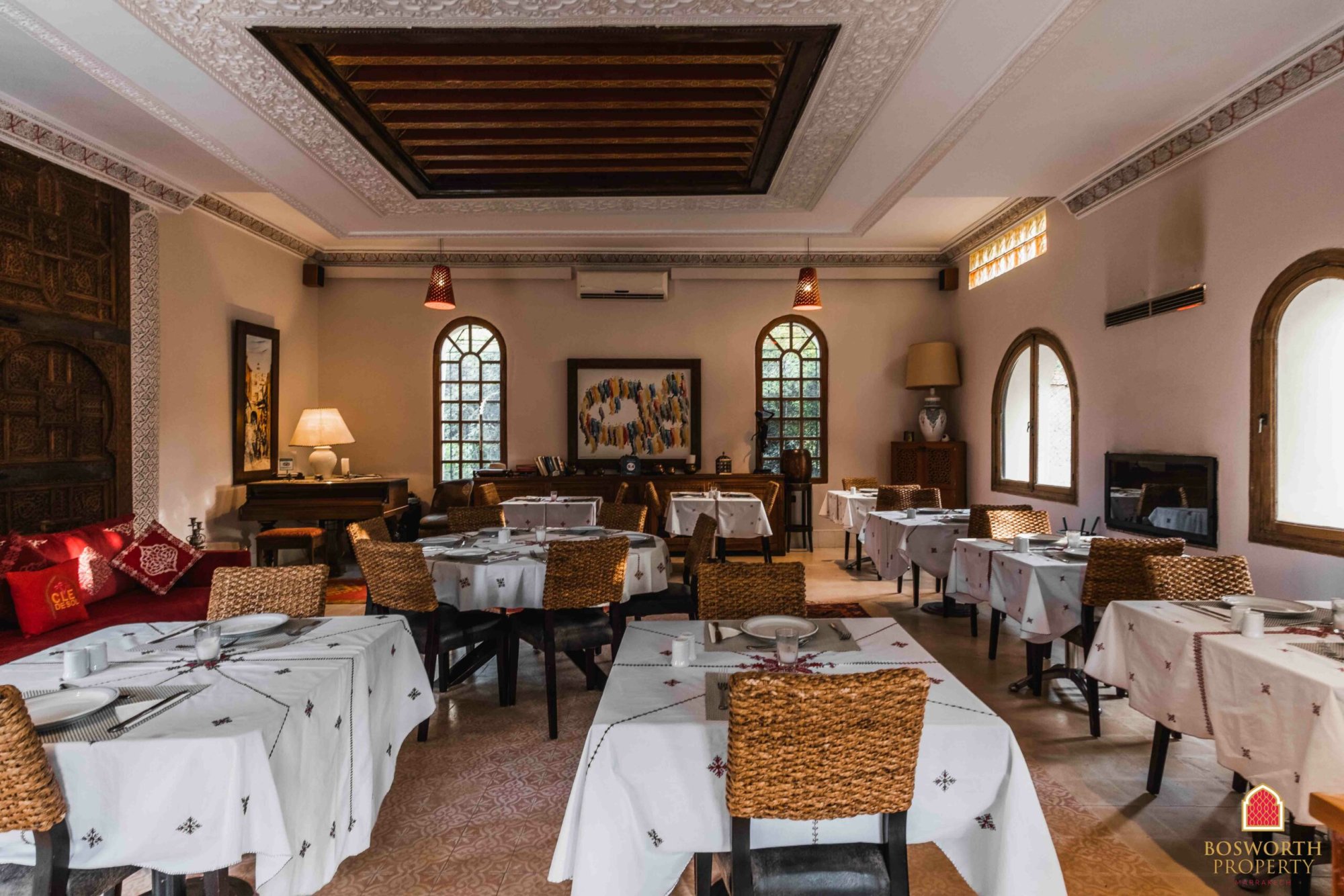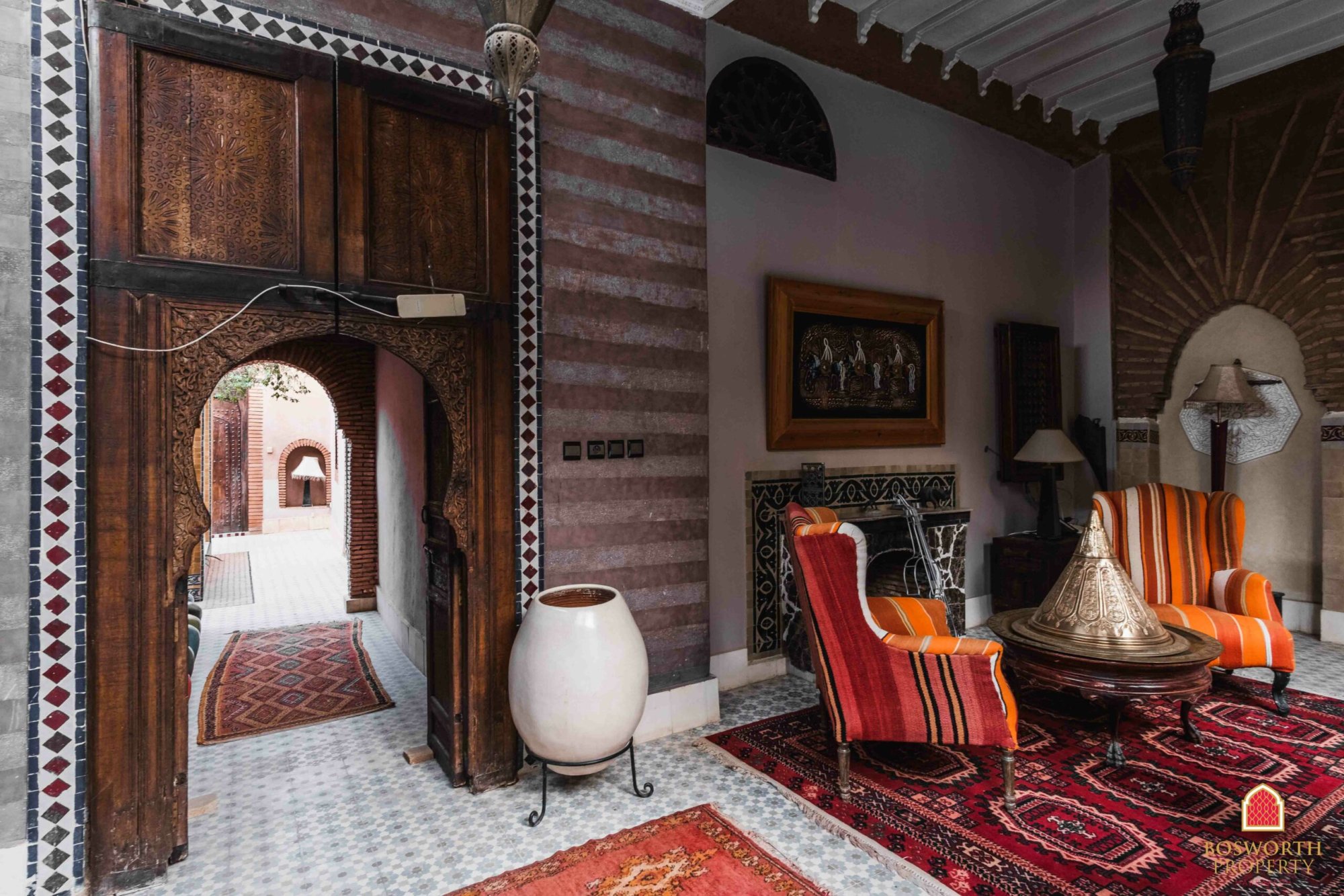 At present the property comprises a walled olive grove, with impressive entrance gates. The old Riad has been substantially renovated and extended to provide luxurious guest accommodation on the ground and first floors. There is a beautiful swimming pool overlooked by extensive terraces. A separate building houses the reception area and office. Behind the pool is a large restaurant building, with a commercial kitchen behind and a first floor elevated terrace giving stunning views of the Atlas snow caps on a clear day.