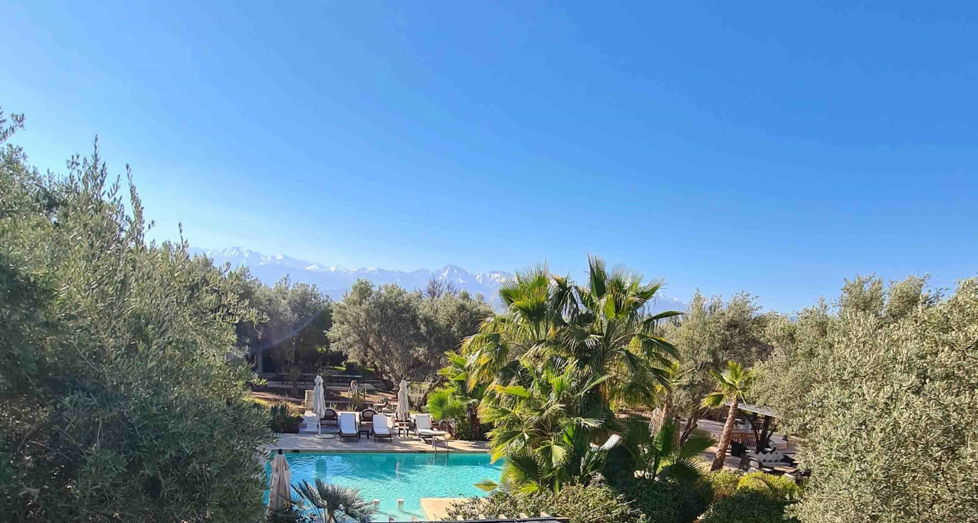 The pool with the High Atlas visible in the distance