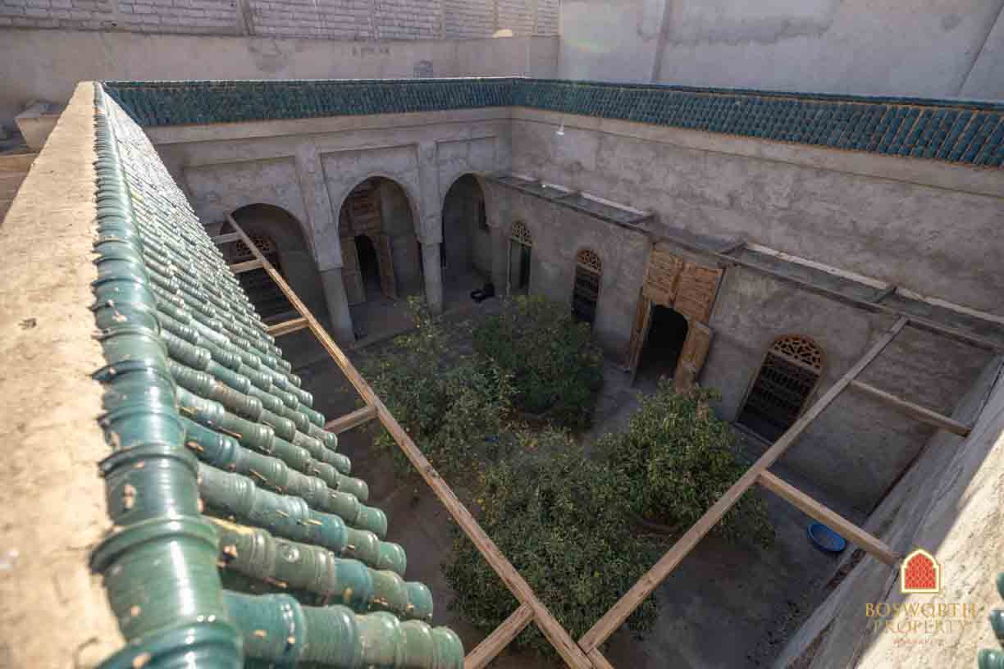 Spectacular Historic Riad For Sale Marrakech. In a perfect Diour Saboun location, close to the big souks, the Madrassa and all the Medina attractions. Taxi drop off just 25 yards from the door! This harmonious and spacious Riad is a thing of rare beauty. All four sides. The ceiling heights are truly impressive - at least 6m in every room - giving huge volumes and real grandeur. This Riad probably dates to the early 19th Century and has lots of it's original features: the cedar wood ceilings, the Khoka doors, the wrought iron window guards. It is extremely rare to have a property of this size and this quality come to market. The ground floor has been reinforced and is basically ready to take the plumbing and electrics. You would probably want to develop the first floor and the vast terraces. Budget at least 350K euros for that. Yet, with an asking price of just 1.2m euros, that brings your total spend to maybe 1.6m euros - for maybe 10 luxury suites in a top location. It makes commercial sense. WhatsApp me now on +212 6 58025028 or use the contact form on this page to arrange your private showing of this Spectacular Historic Riad For Sale Marrakech.