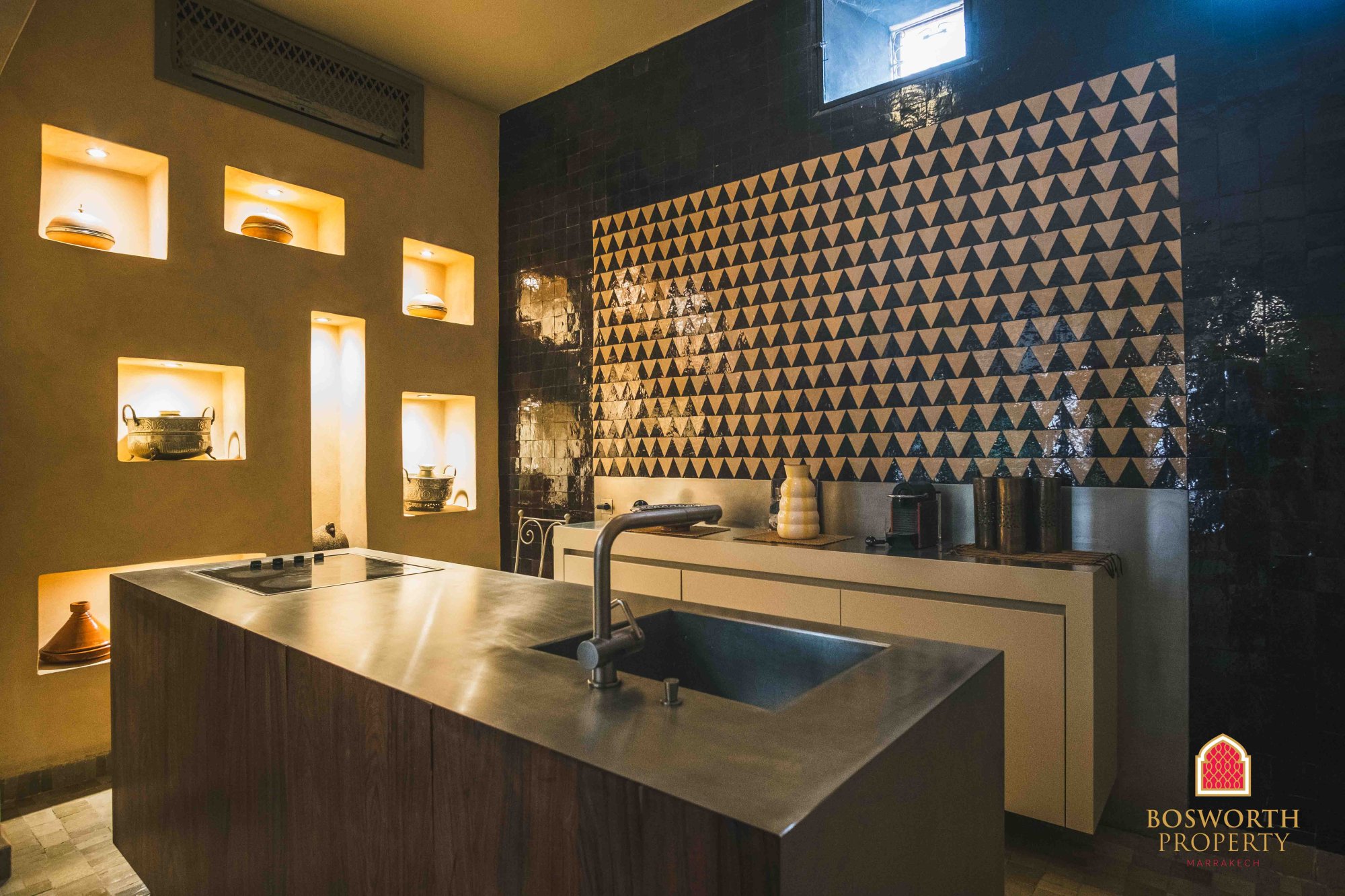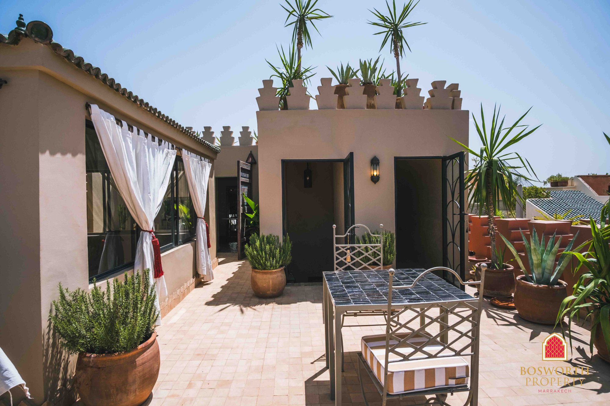 This superb Riad melds the old with the new. There are some excellent historical features, including old beans and Zouack hand painted ceilings. And there is an incredible modern kitchen to the highest specs. There is space and comfort in this elegant family property. Being sold fully furnished. There are 2 terrace levels and there is a cute hammam on the first one. The high terrace offers 360 degree views - quite remarkable. This is perfect as your Medina pied-à-terre, and of course it would do really well as a short term rental investment. Don't miss out! WhatsApp me now on +212 6 5802 5028 or fill in the contact form on this page. Let's go and see it!