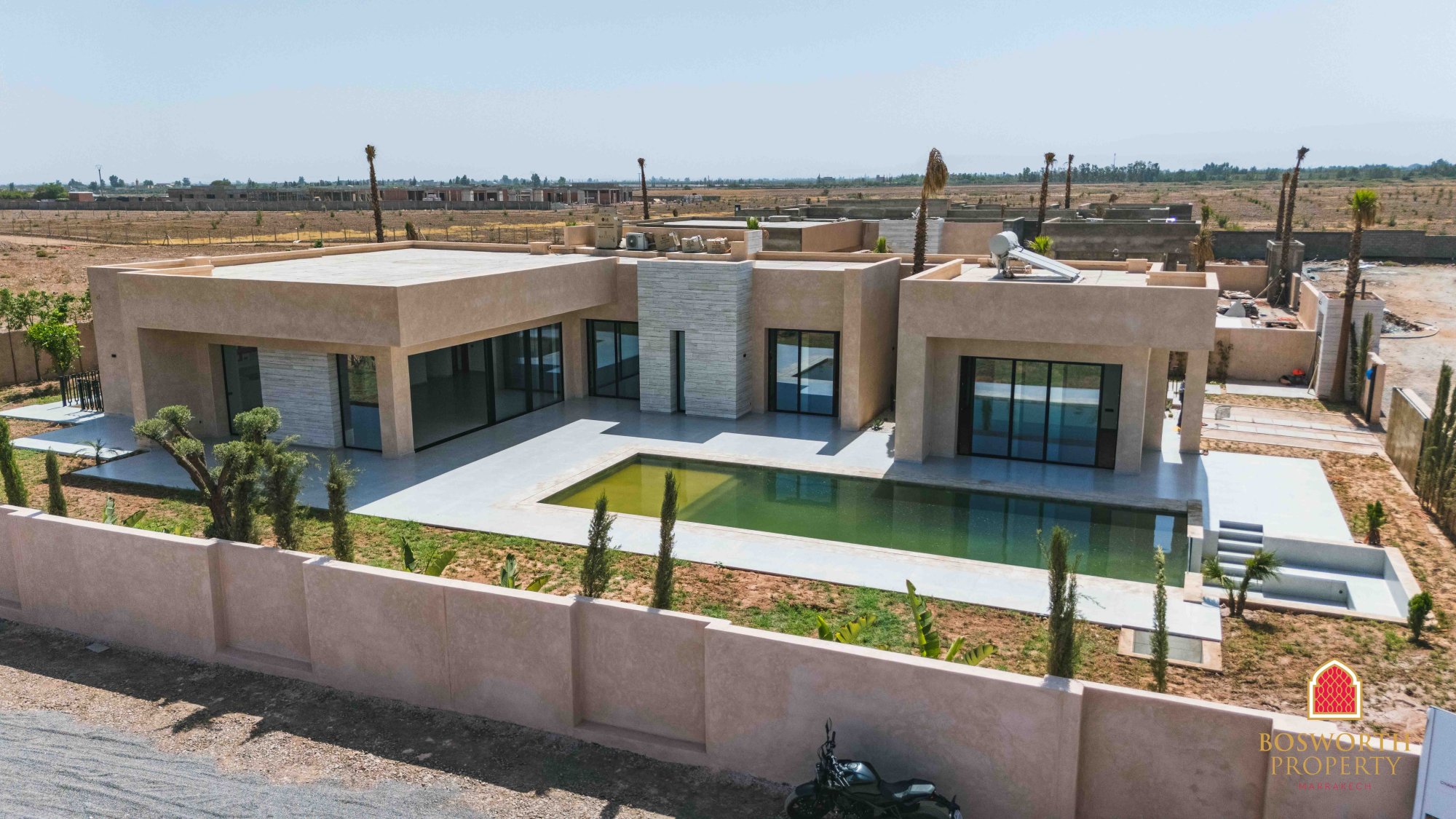 In a great location just 10km from downtown Marrakech, these villas are finished to excellent specifications. Plots are large, the smallest being a whopping 1390m2. Freehold title. 5 gorgeous suites. 24/7 security. Pool. All modern conveniences, including fibre optic wifi. If you're looking for your Marrakech home from home, or maybe considering an investment opportunity then look no further. This development, with just 6 luxury villas, is top quality and at an affordable price. WhatsApp me now on +212 6 5802 5028 or use the contact form on this page to arrange your private showing!