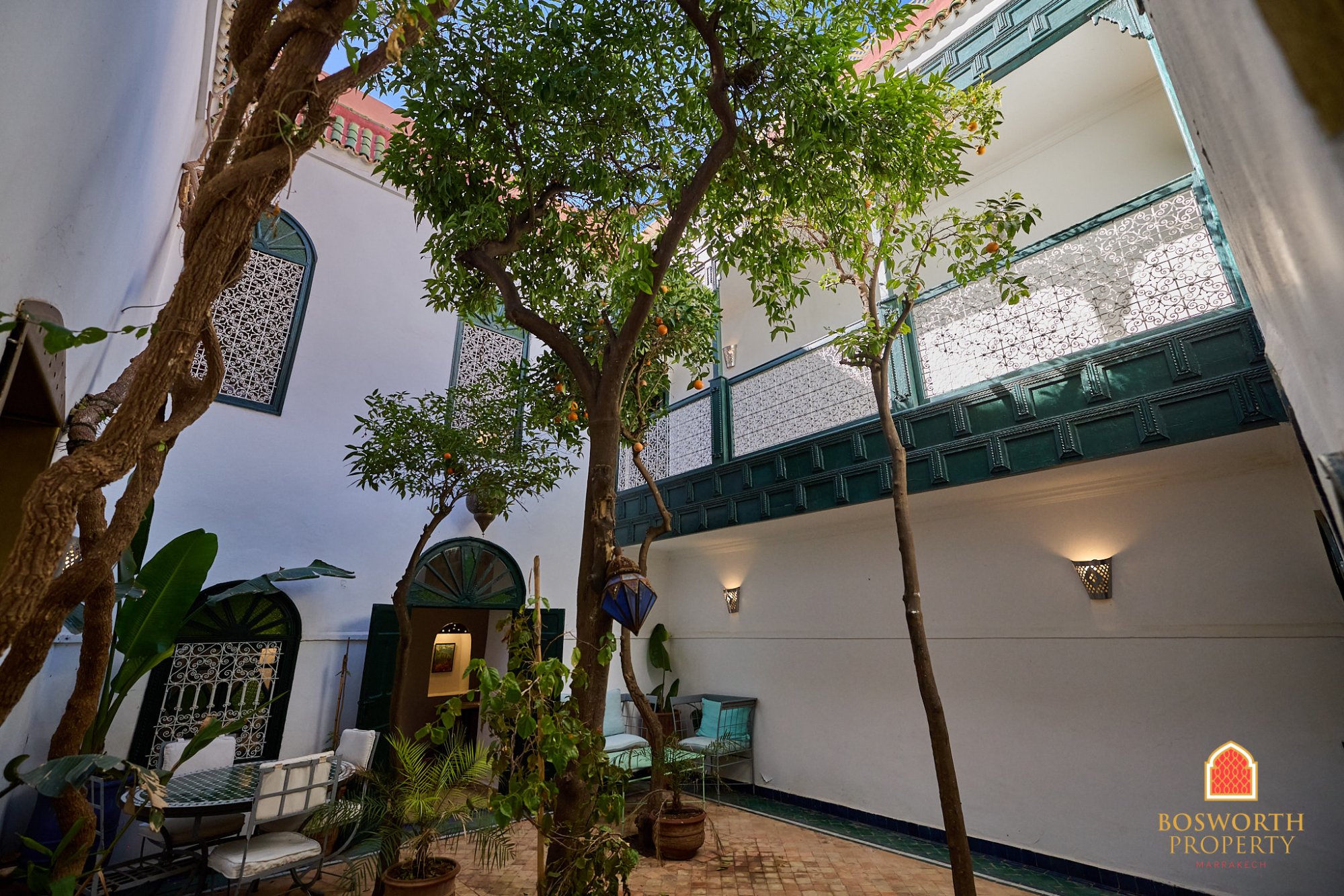 Top Location Charming Riad For Sale Marrakech. It is full of history and is frankly beautiful. The spacious patio courtyard with it's orange and mandarine trees provides cool shade. The sunny terraces afford excellent views. The internal architecture is classical and superb. It needs a bit of TLC, yet at this price it must be high on your list as your pied-Ã -terre and as a short term rental investment. Secure 24/7 parking is just 60m form the door. We're just 3 minutes walk from Riad Zitoune Jdid and all the attractions. It is exceptional value at just 298'000 euros. Don't miss out! WhatsApp me now on +212 6 5802 5028 or use the contact form on this page to arrange your private showing. You will love this!