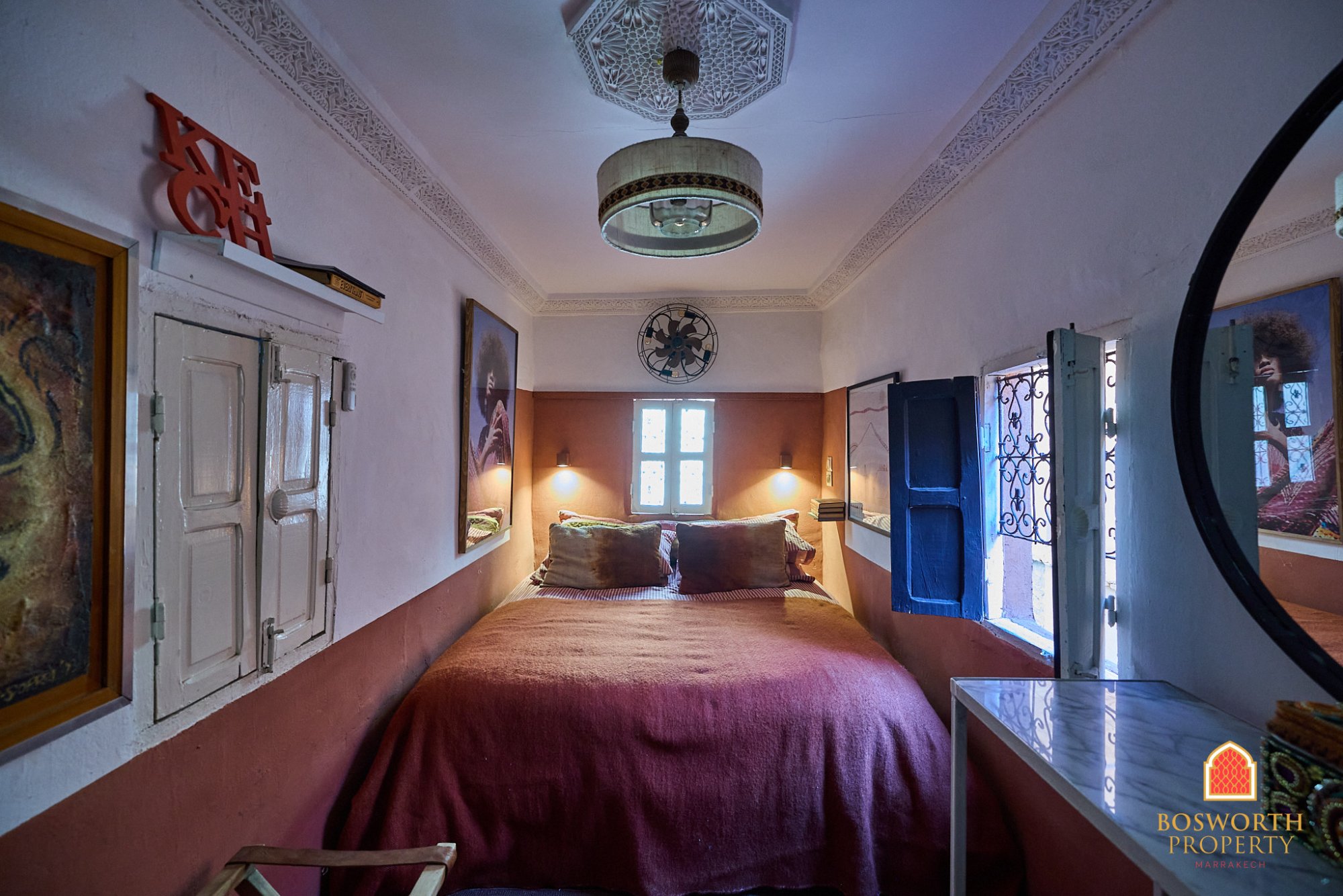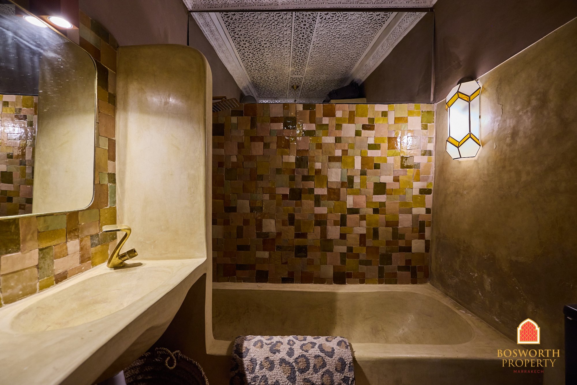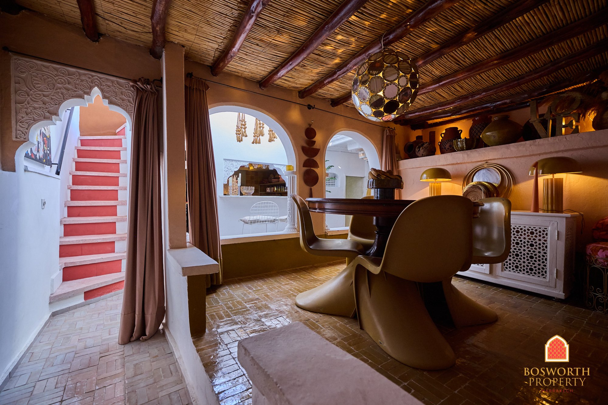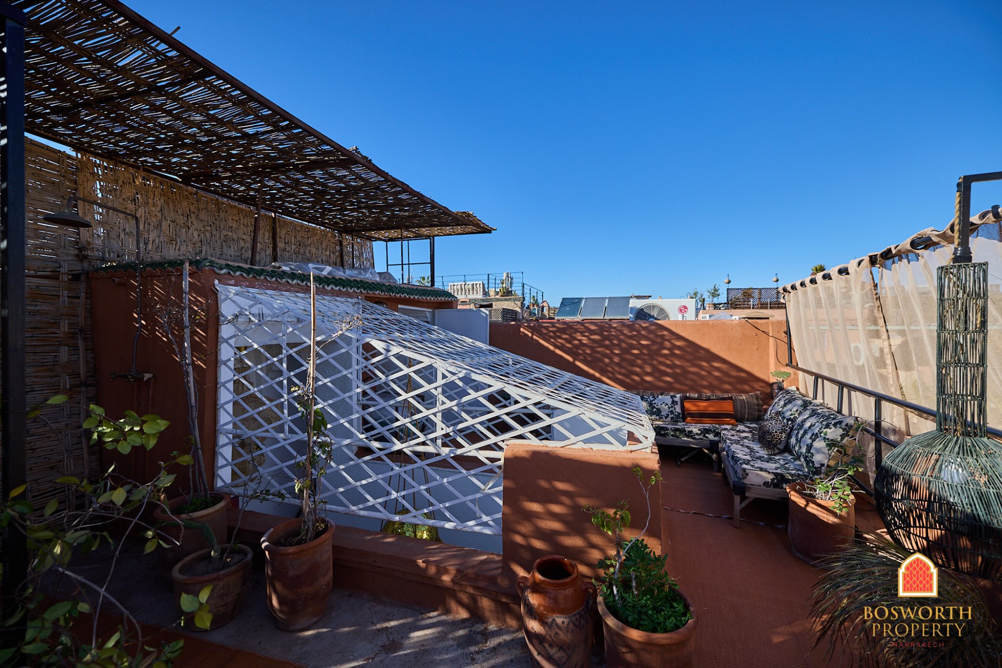 On the terrace, we have some amazing views looking over the iconic Koutoubity mosque and High Atlas mountains. The location is incredible, quiet yet a few steps away from the Jema el Fna square, Jardin Secret. rooftop bars and restaurants... It is currently being rented on AirBnB and ideal for someone looking for a short term rental or Pied a Terre in the heart of the medina.